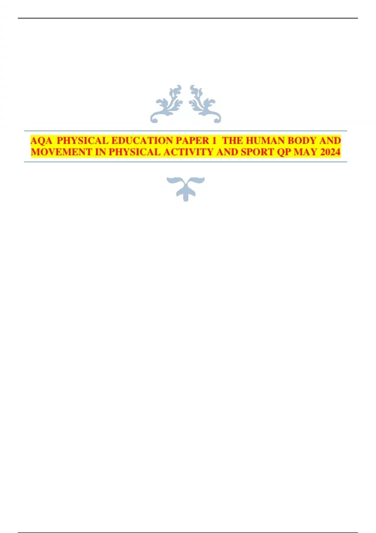 AQA PHYSICAL EDUCATION PAPER 1 THE HUMAN BODY AND