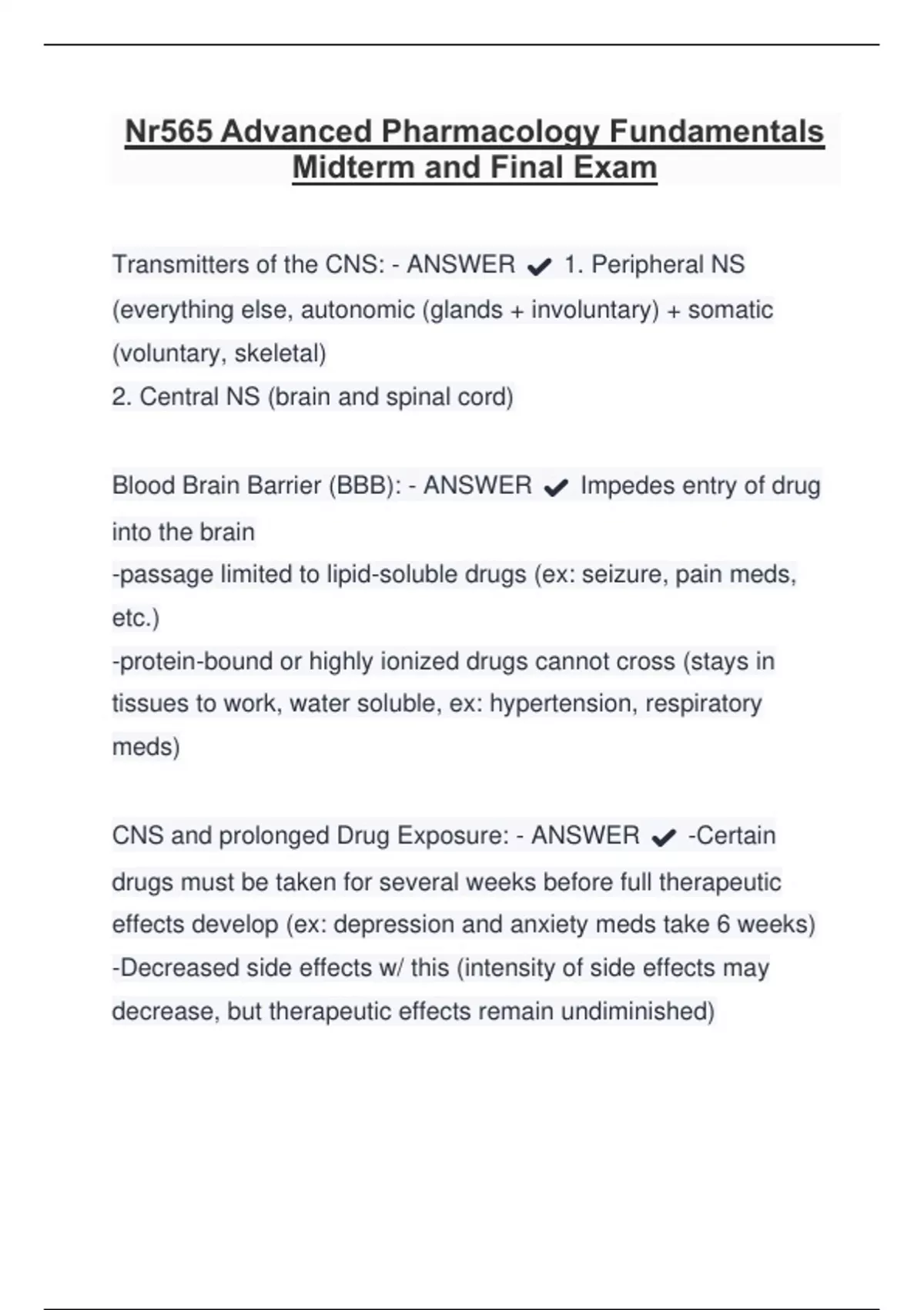 Blood Brain Barrier (BBB): - ANSWER ✔️ Impedes entry of drug