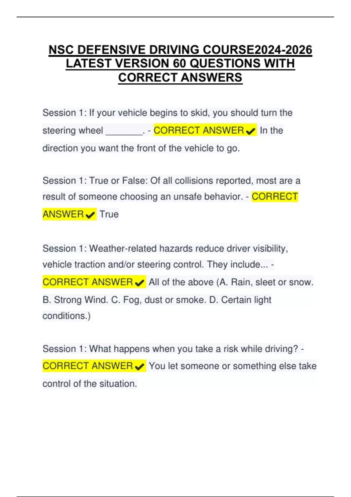 Session 1: If your vehicle begins to skid, you should turn the