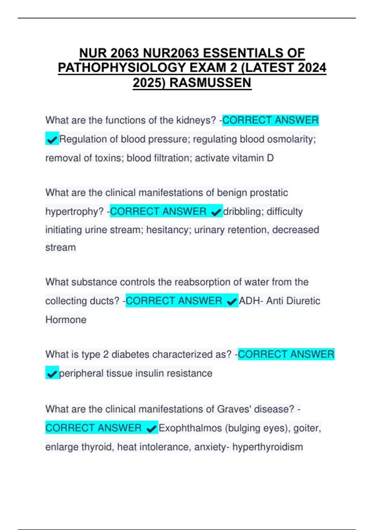 PATHOPHYSIOLOGY EXAM 2 (LATEST 2024