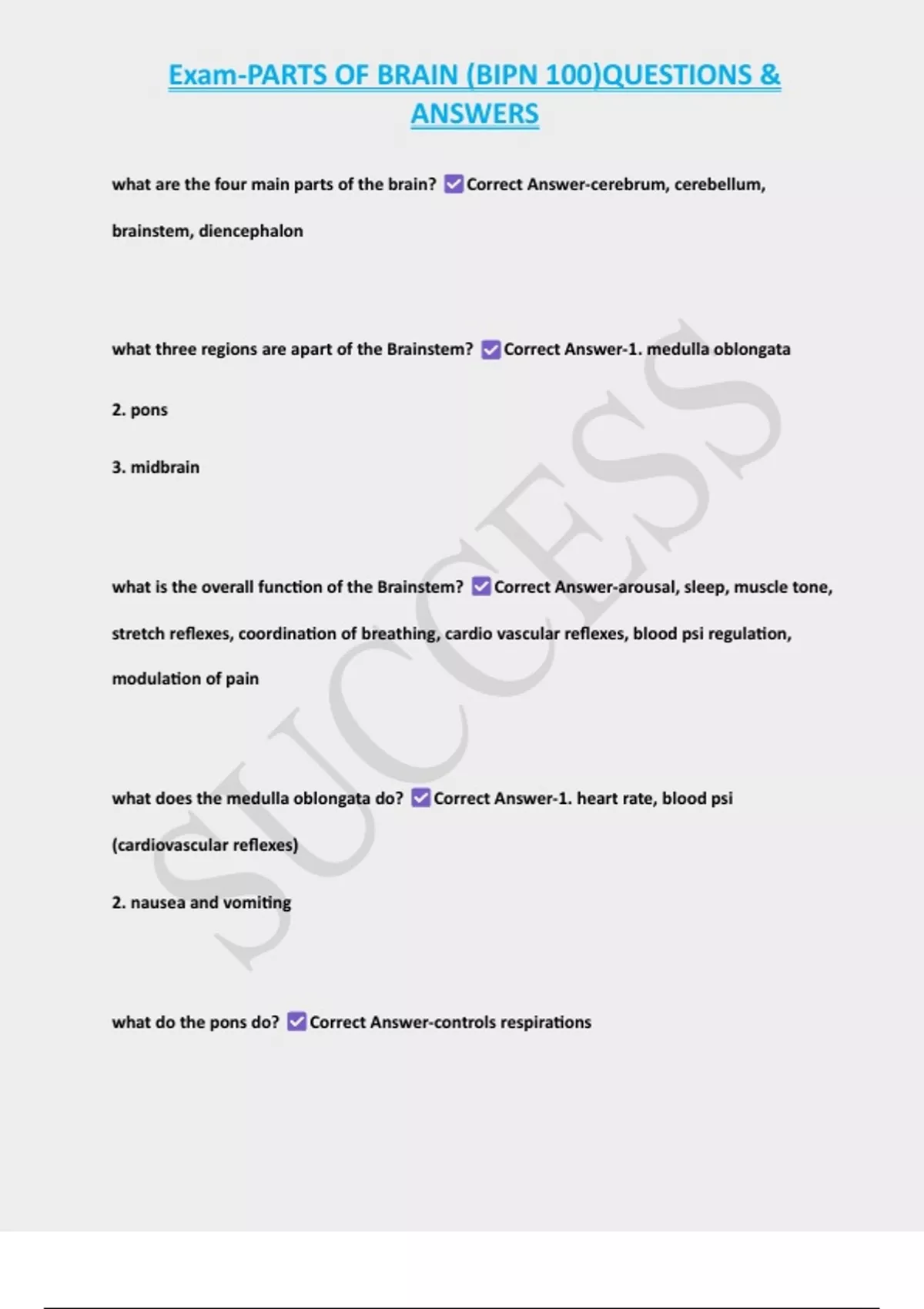 , Exam-PARTS OF BRAIN (BIPN 100)QUESTIONS &