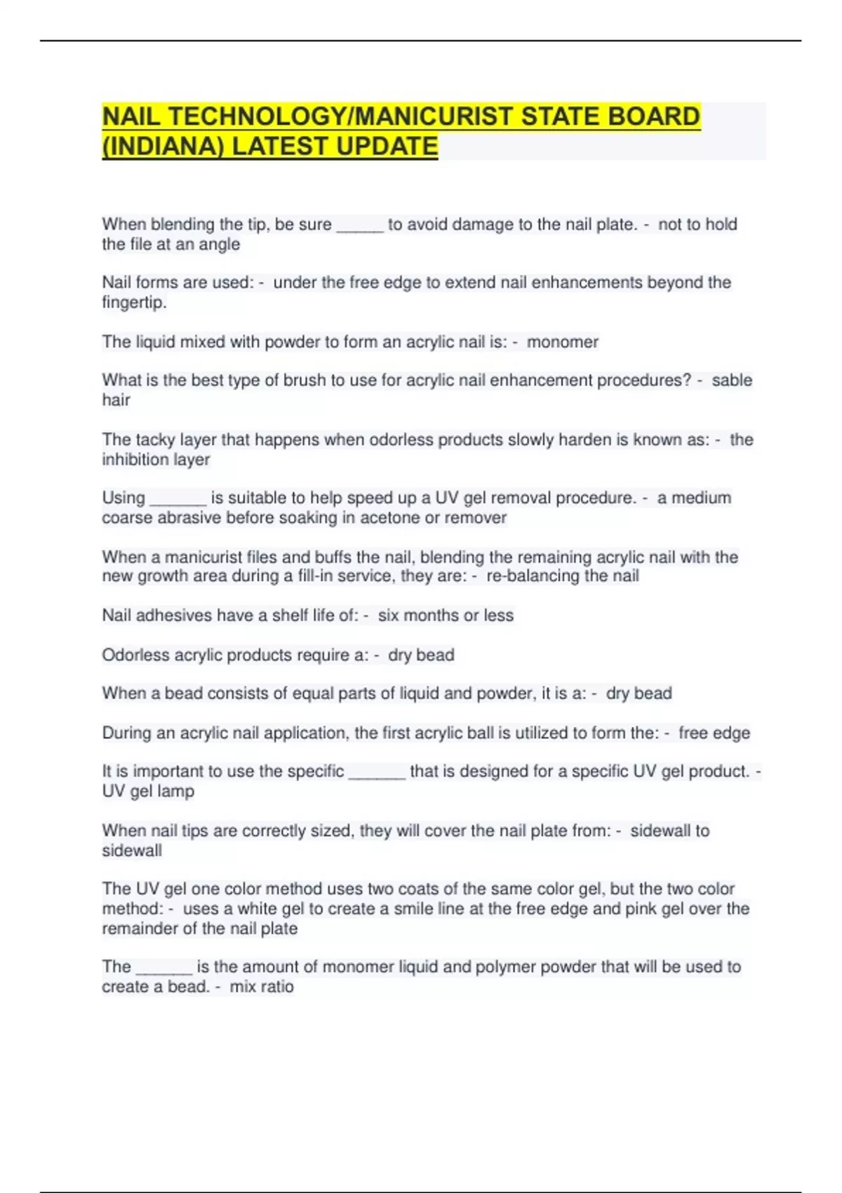 The liquid mixed with powder to form an acrylic nail is: - monomer