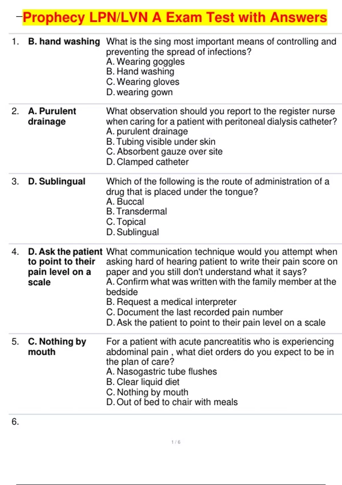 , Prophecy LPN/LVN A Exam Test with Answers