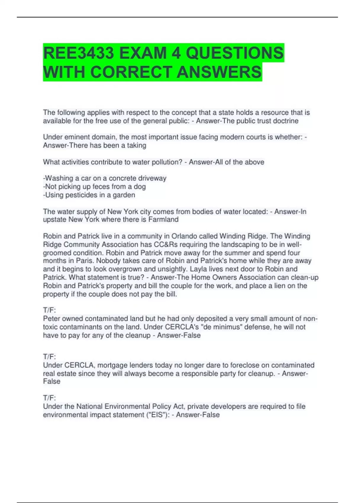 Patrick. What statement is true? - Answer-The Home Owners Association can clean-up