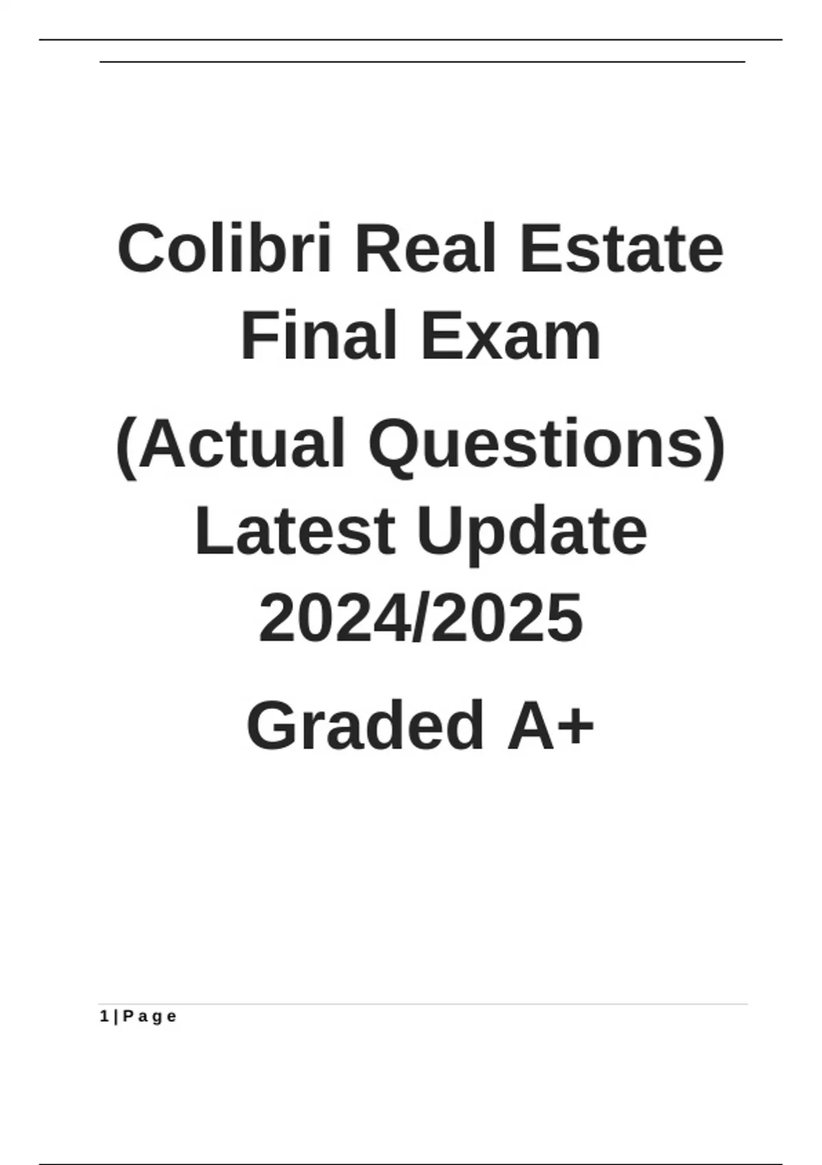 ,Colibri Real Estate Final Exam