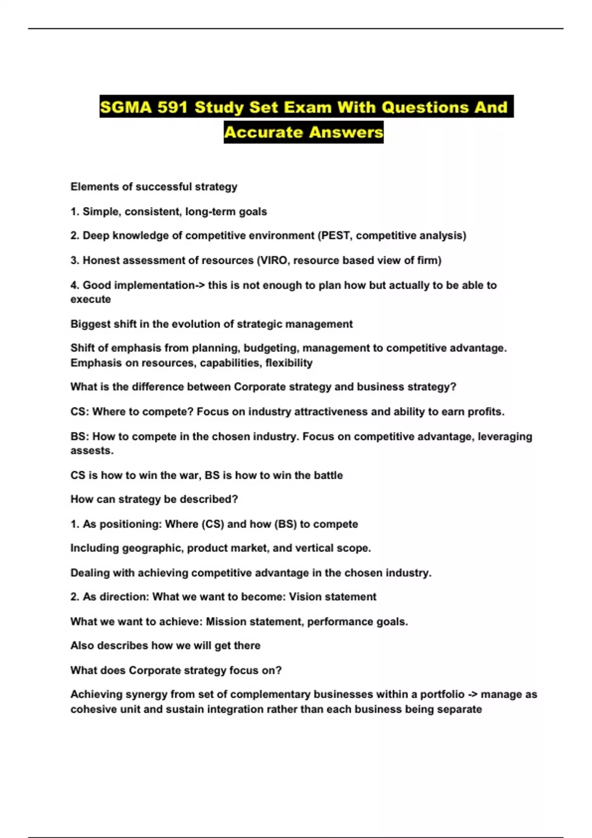 SGMA 591 Study Set Exam With Questions And