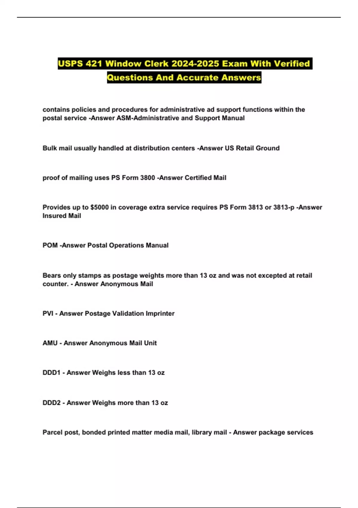 USPS 421 Window Clerk 2024-2025 Exam With Verified