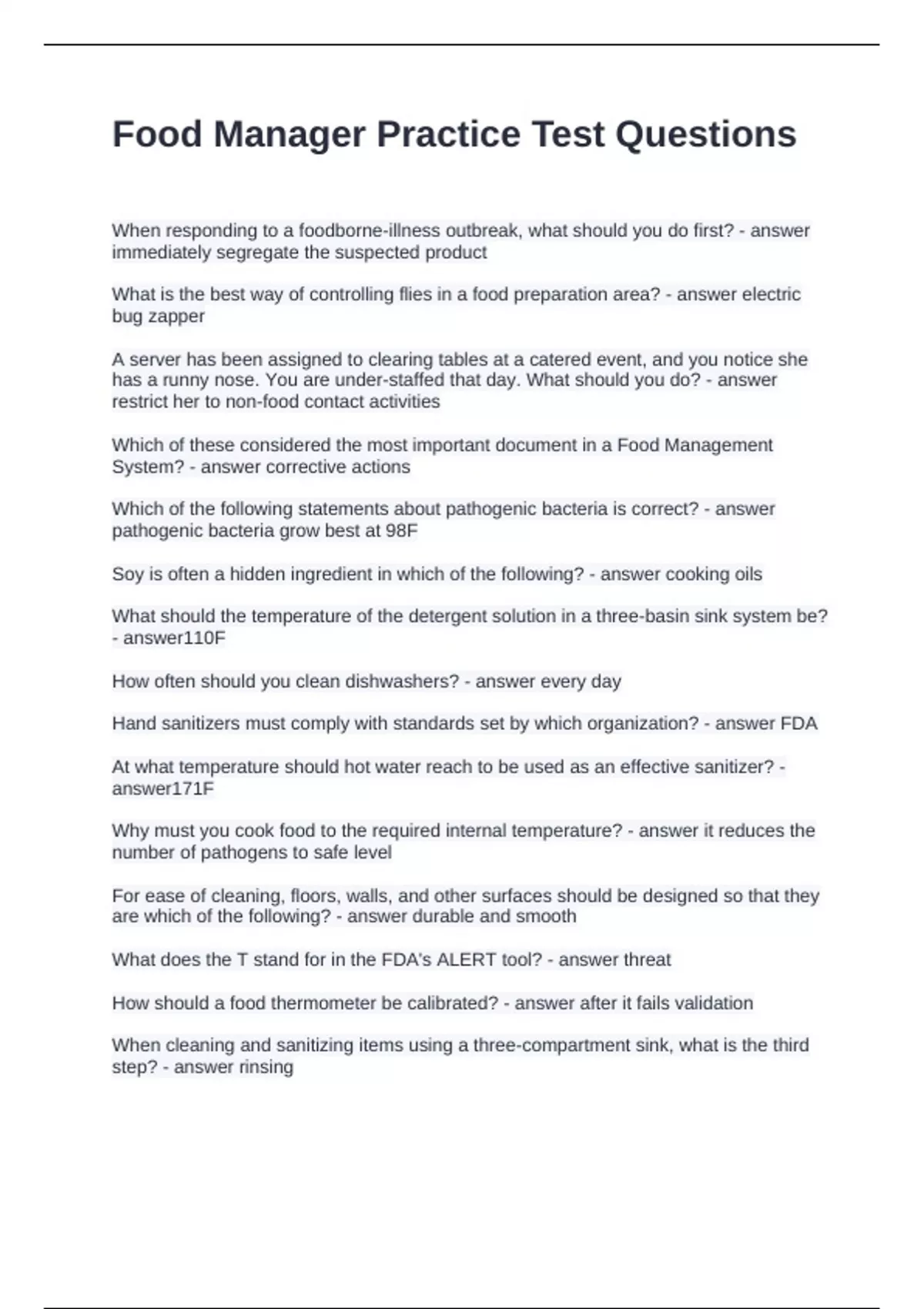 Food Manager Practice Test Questions