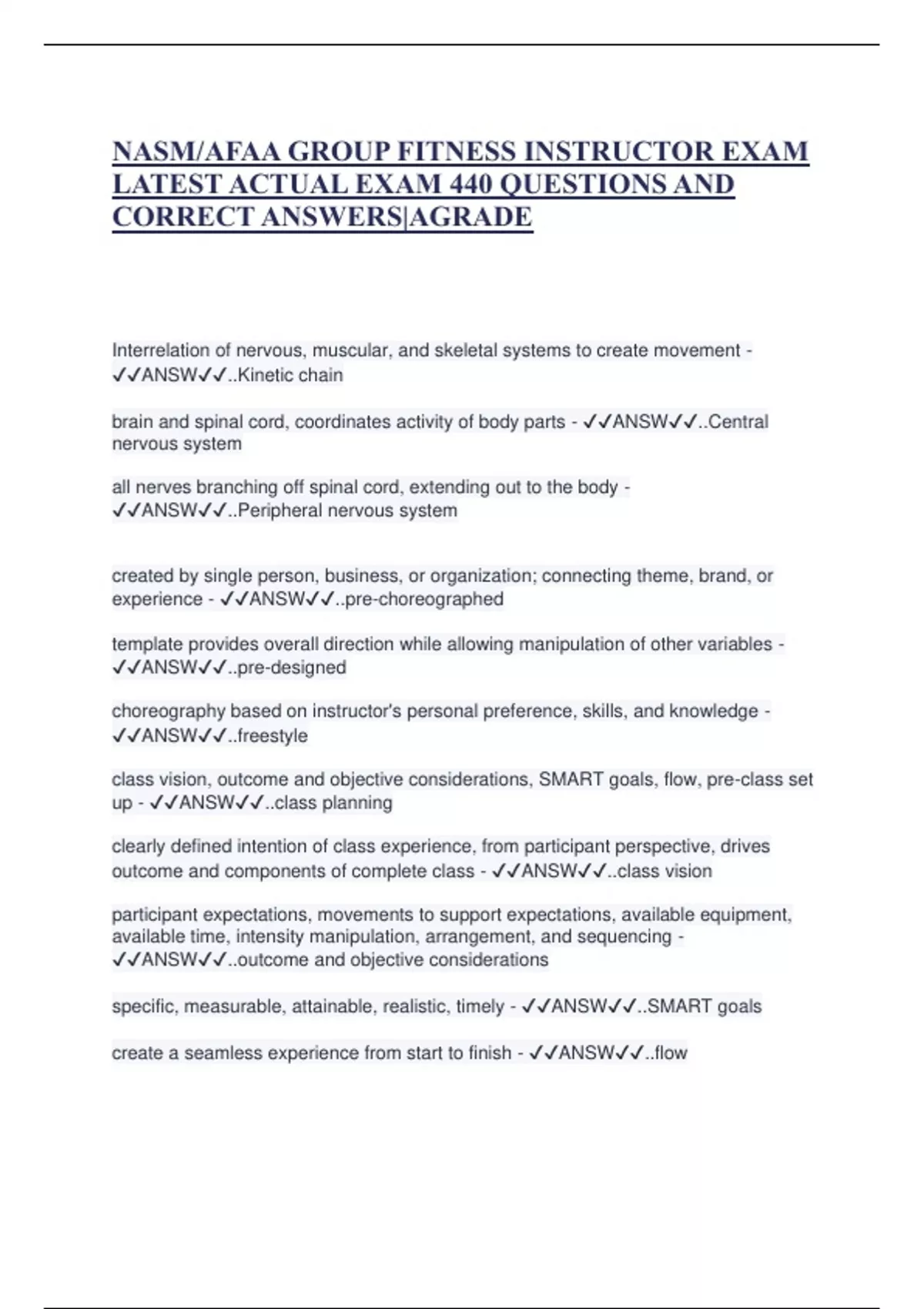 CORRECT ANSWERS|AGRADE