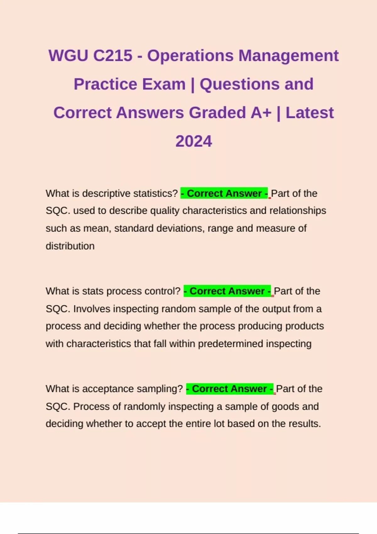 WGU C215 - Operations Management Practice Exam | Questions and Correct Answers Graded A+ | Latest 2024 WGU C215 - Operations Management Practice Exam | Questions and Correct Answers Graded A+ | Latest 2024 WGU C215 - Operations Management Practice Exam | Questions and Correct Answers Graded A+ | Latest 2024