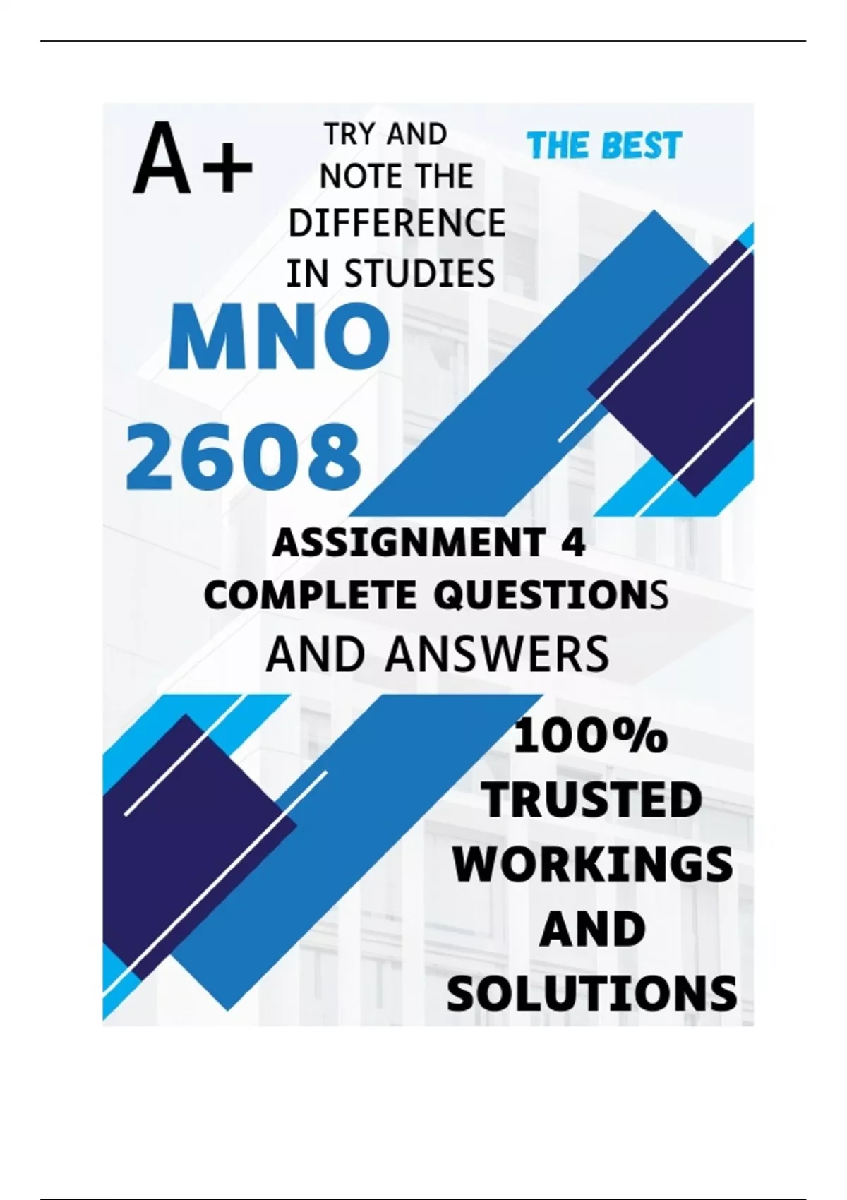 , MNO2608 Assignment 4 (COMPLETE ANSWERS)