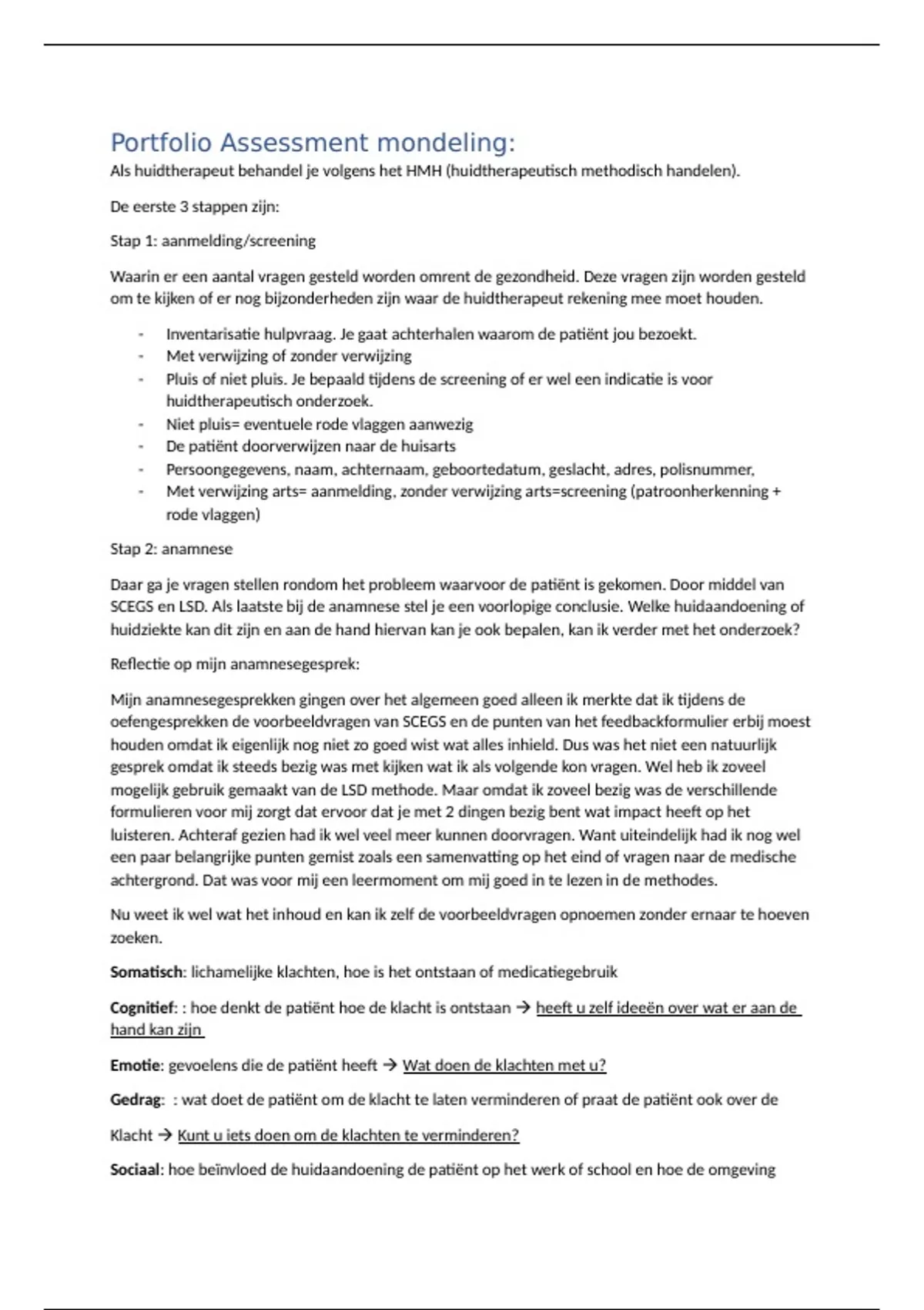 Reflectie op mijn anamnesegesprek:
