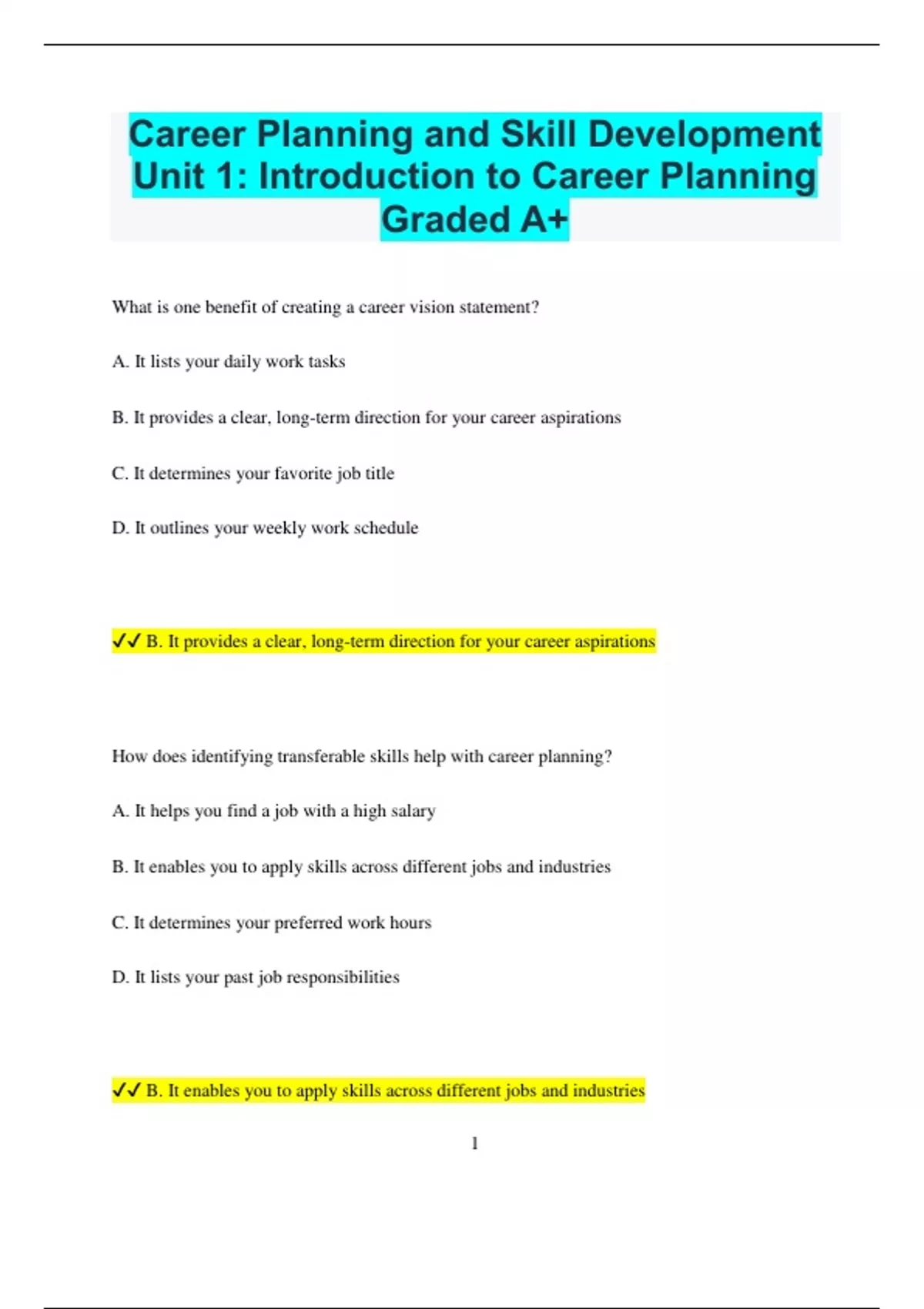✔✔ B. It provides a clear, long-term direction for your career aspirations