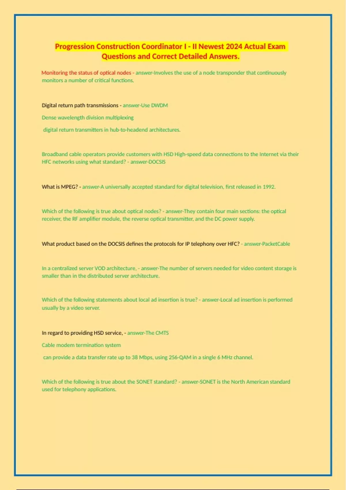 Progression Construction Coordinator I - II Newest 2024 Actual Exam