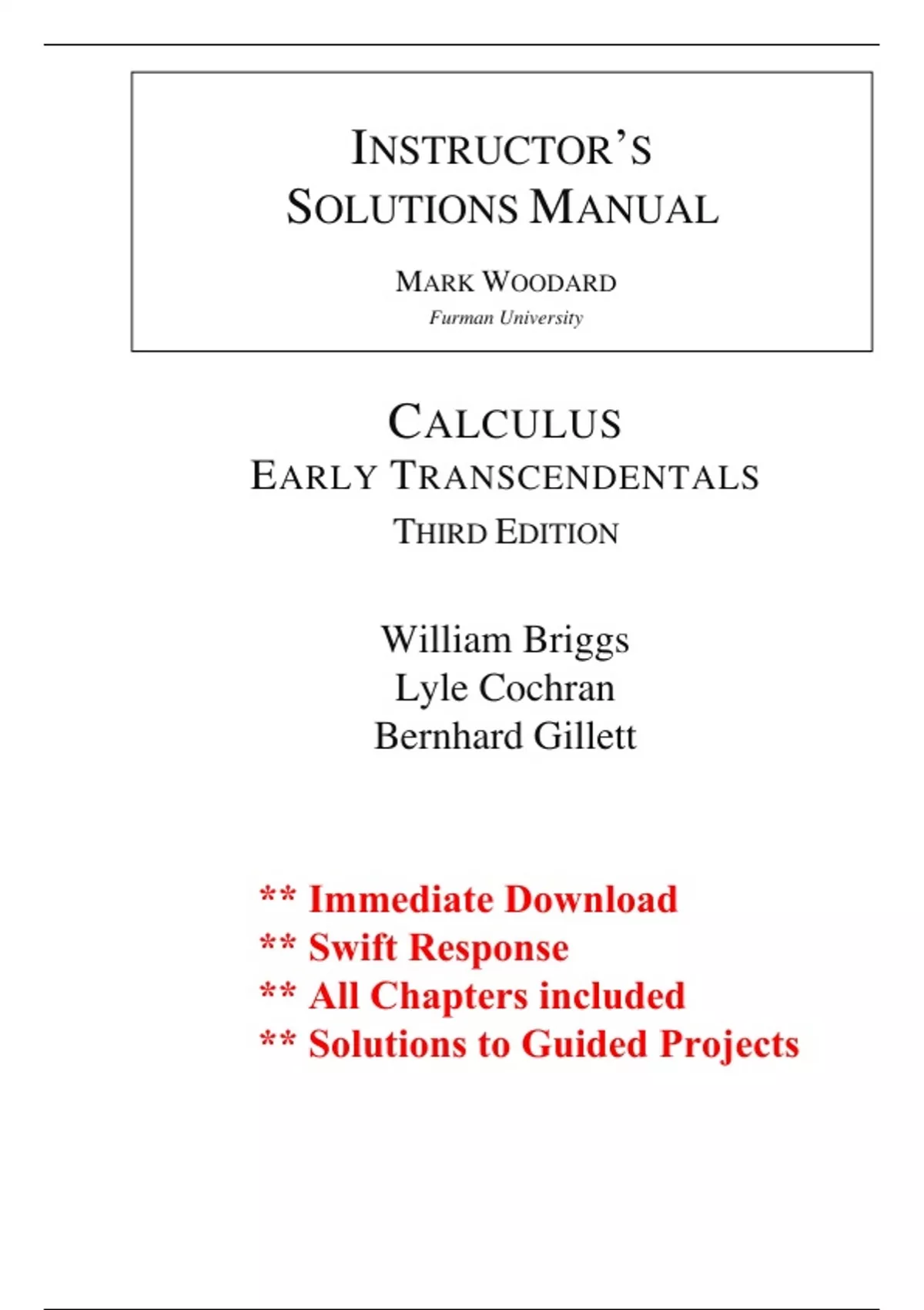 Calculus Early Transcendentals 3rd Edition Solution Manual Complete Solution Manual Calculus Early Transcendentals 3rd Edition Questions & Answers with rationales PDF File All Pages All Chapters Grade A+