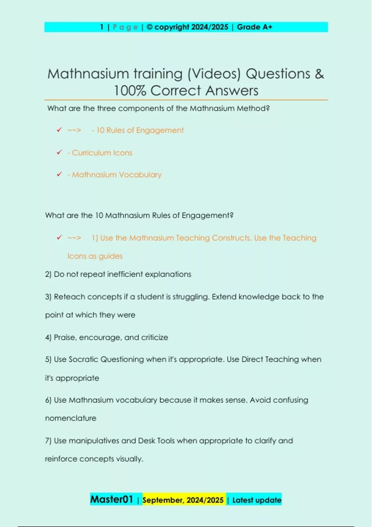 Mathnasium training (Videos) Questions &