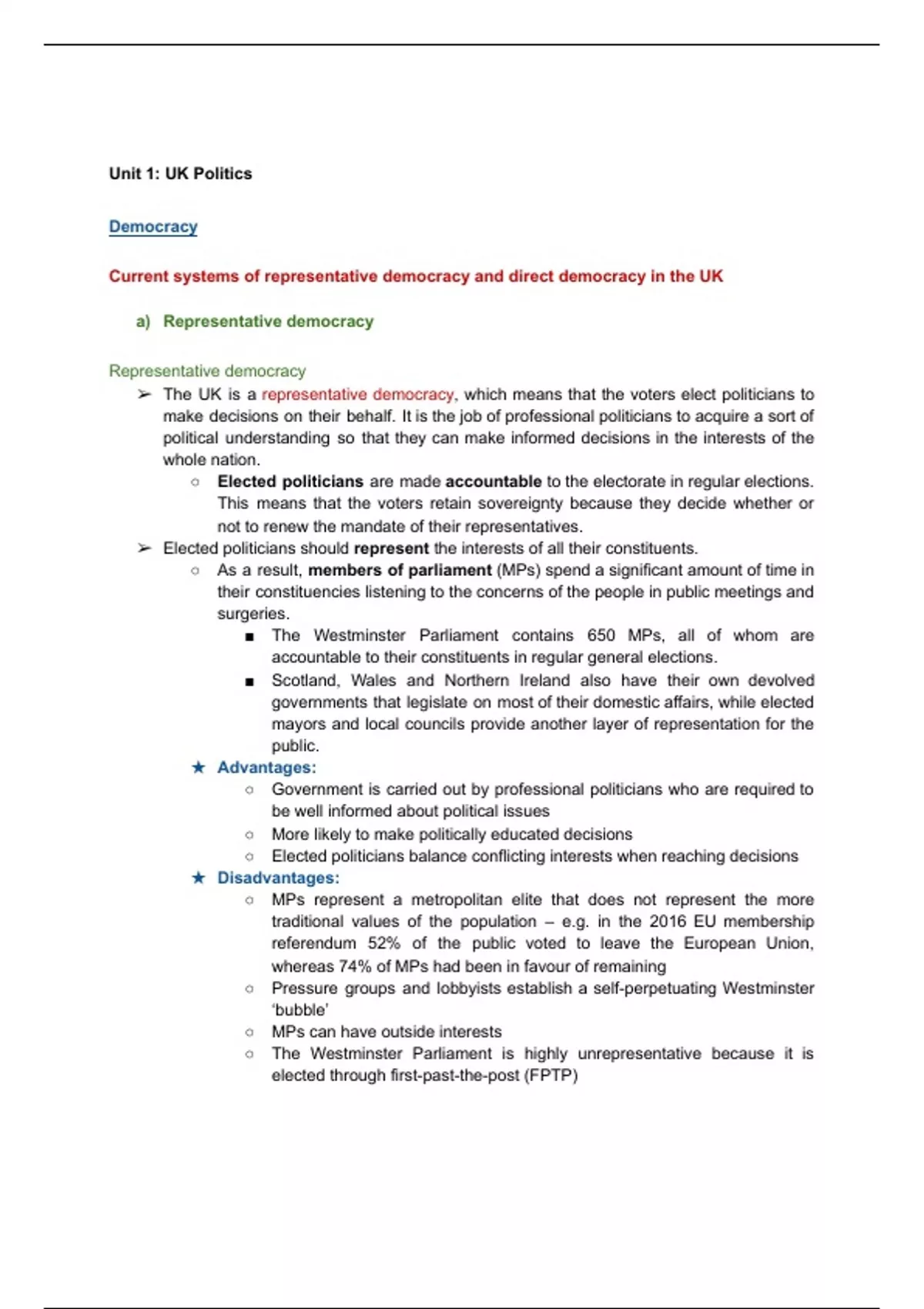 ➢ The UK is a representative democracy, which means that the voters elect politicians to