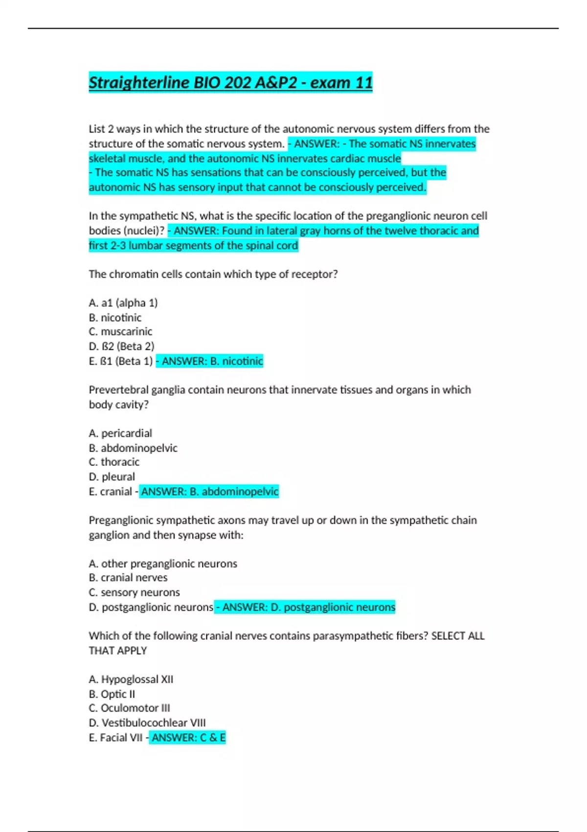 sympathetic chain ganglia supply the heart - ANSWER: D. the adrenal medulla is