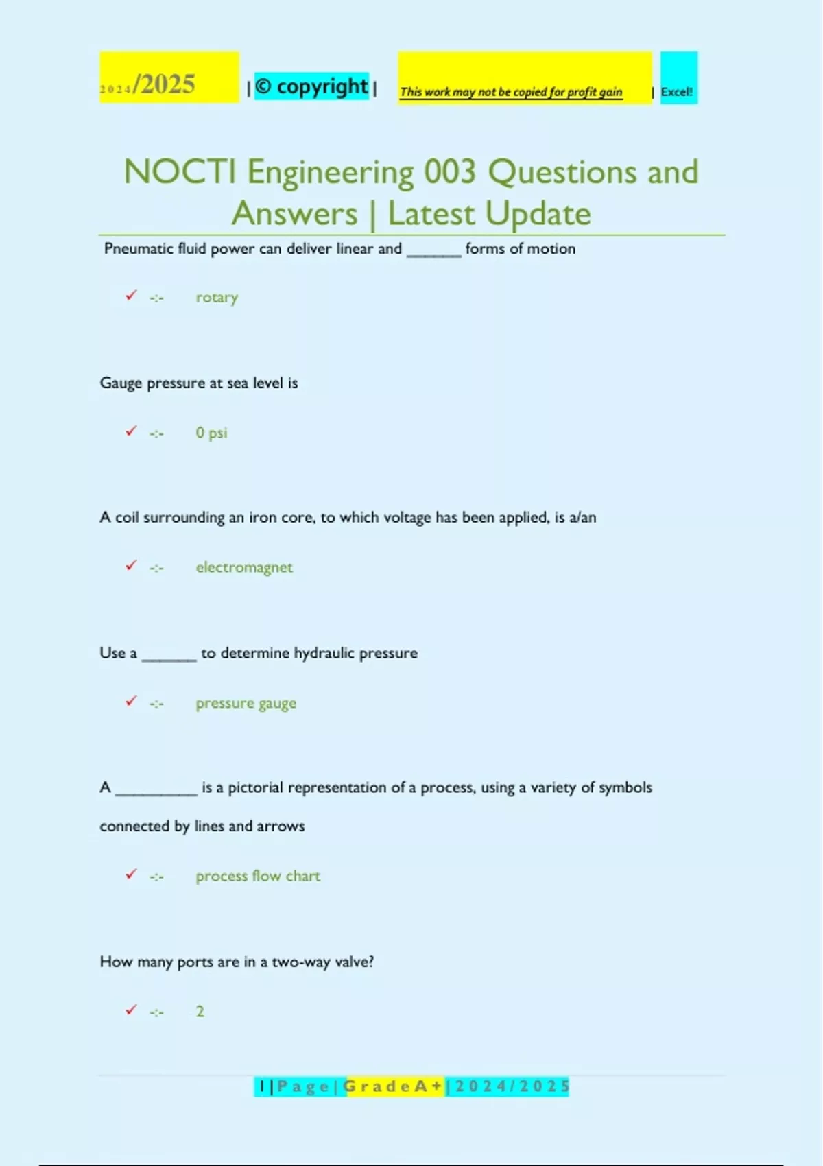 , 2024 /2025 | © copyright | This work may not be copied for profit gain | Excel!