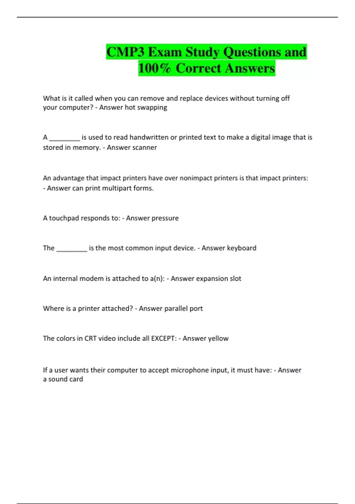CMP3 Exam Study Questions and