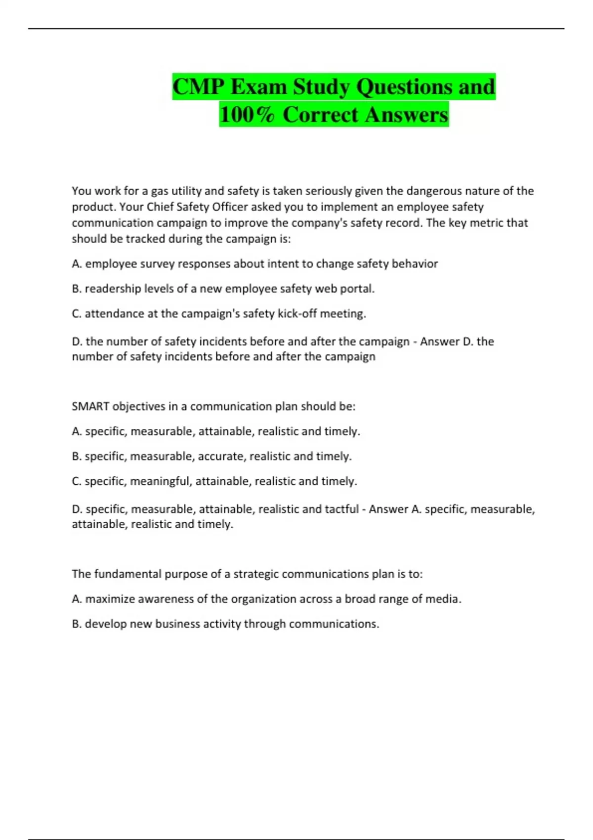 CMP Exam Study Questions and 100% Correct Answers