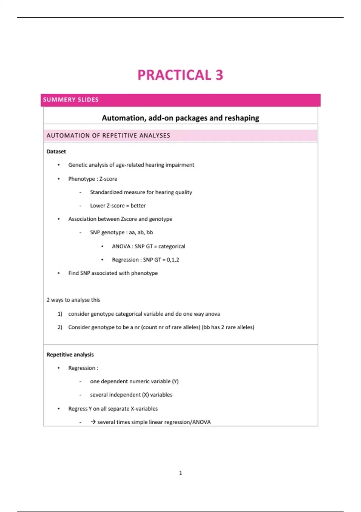 • ANOVA : SNP GT = categorical