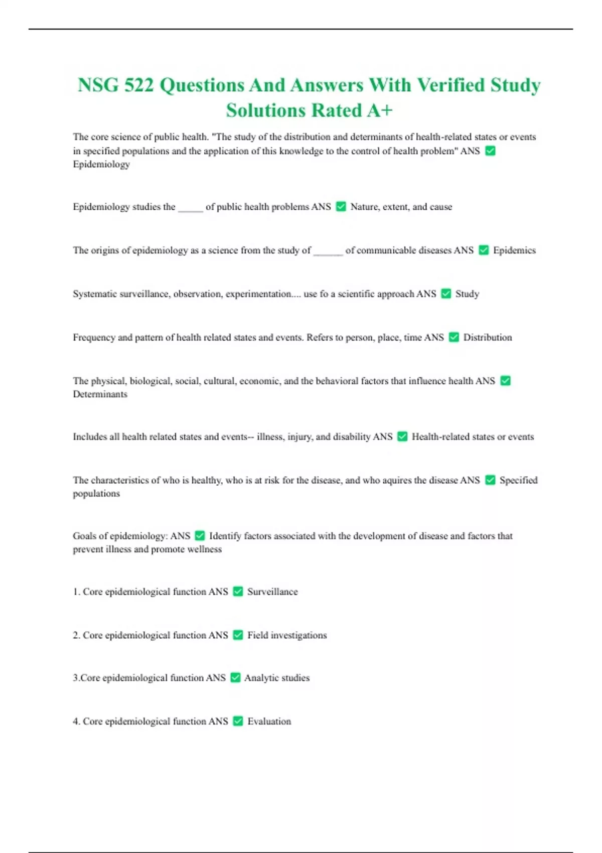 Goals of epidemiology: ANS Identify factors associated with the development of disease and factors that