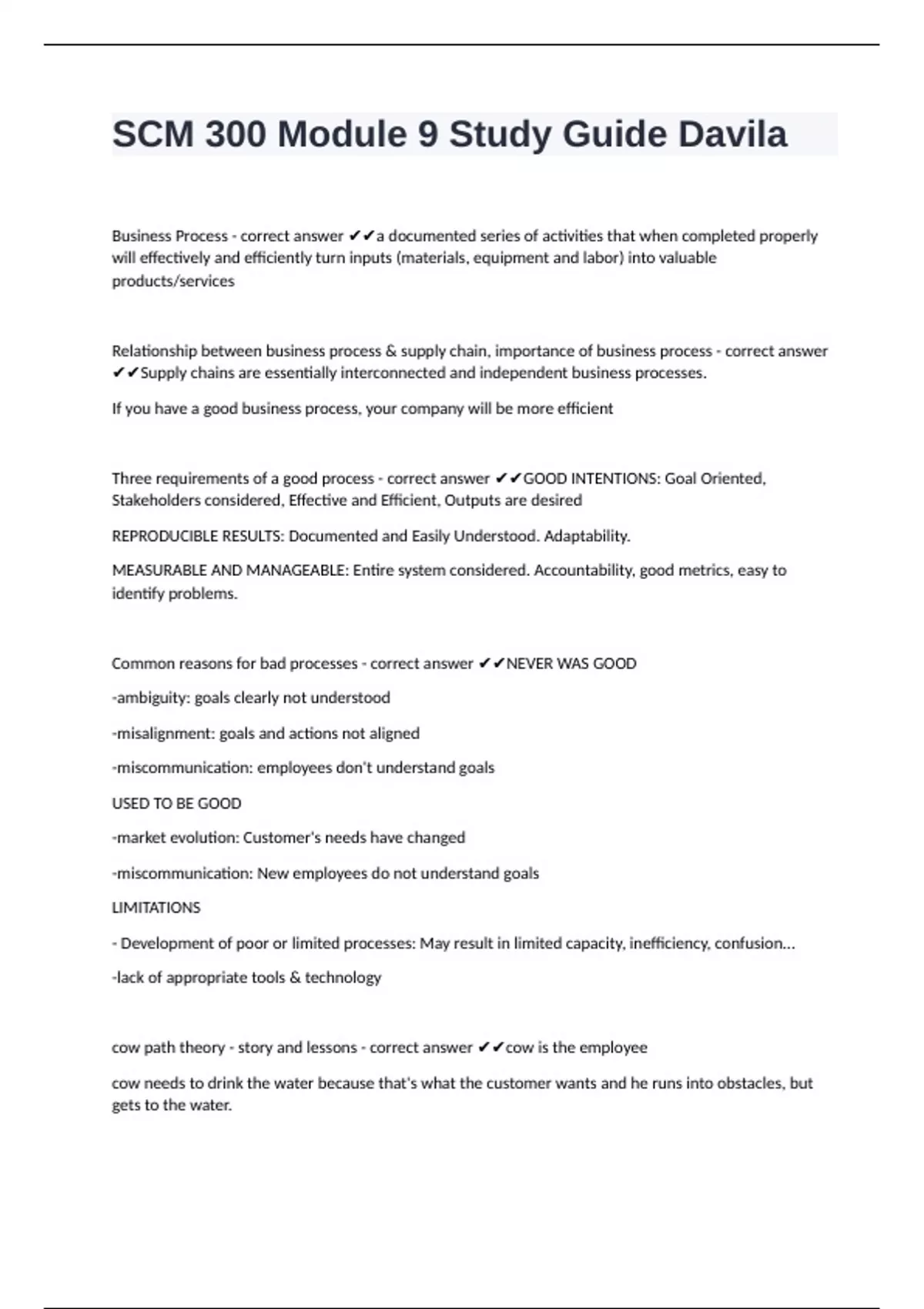 Business Process - correct answer ✔✔a documented series of activities that when completed properly