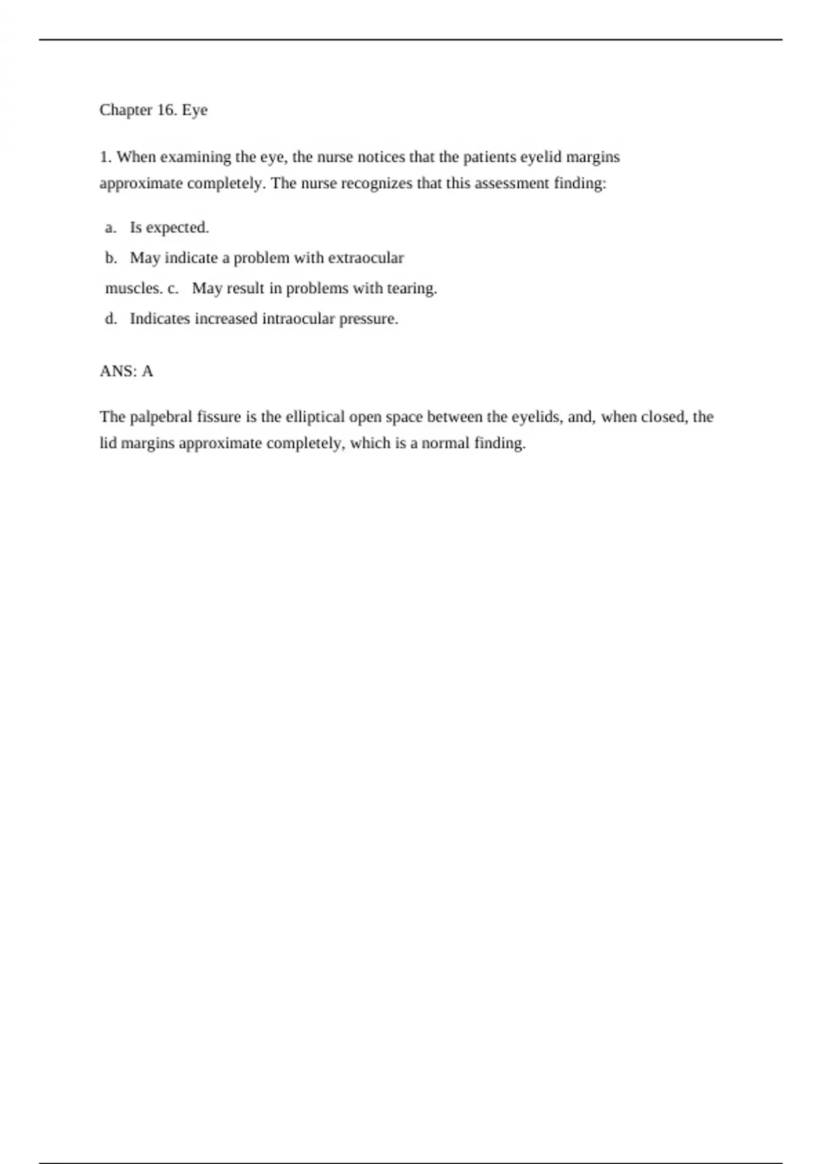 1. When examining the eye, the nurse notices that the patients eyelid margins