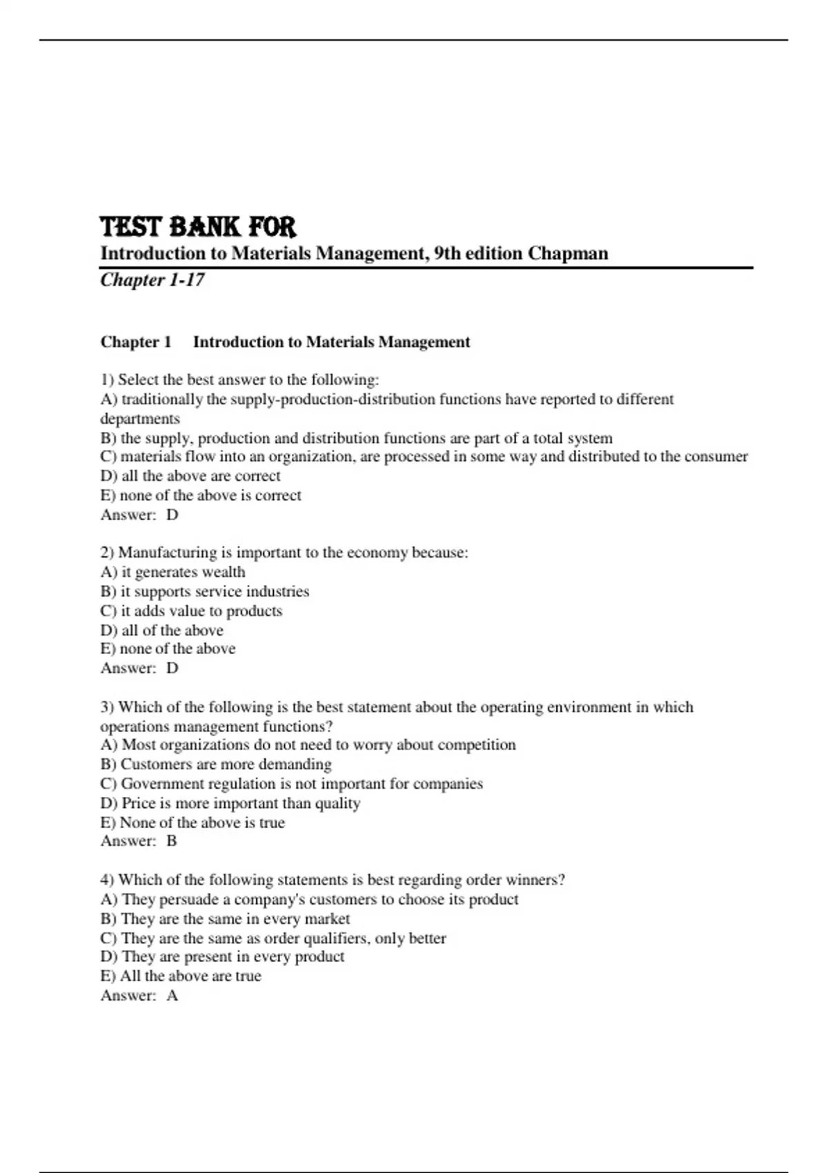 significant changes or additions.**4. Practical Applications** - **Industry Examples**: Use case studies and practical examples from the test bank to illustrate how materials management concepts are applied in different industries. - **Problem-Solving**: Address common problems and