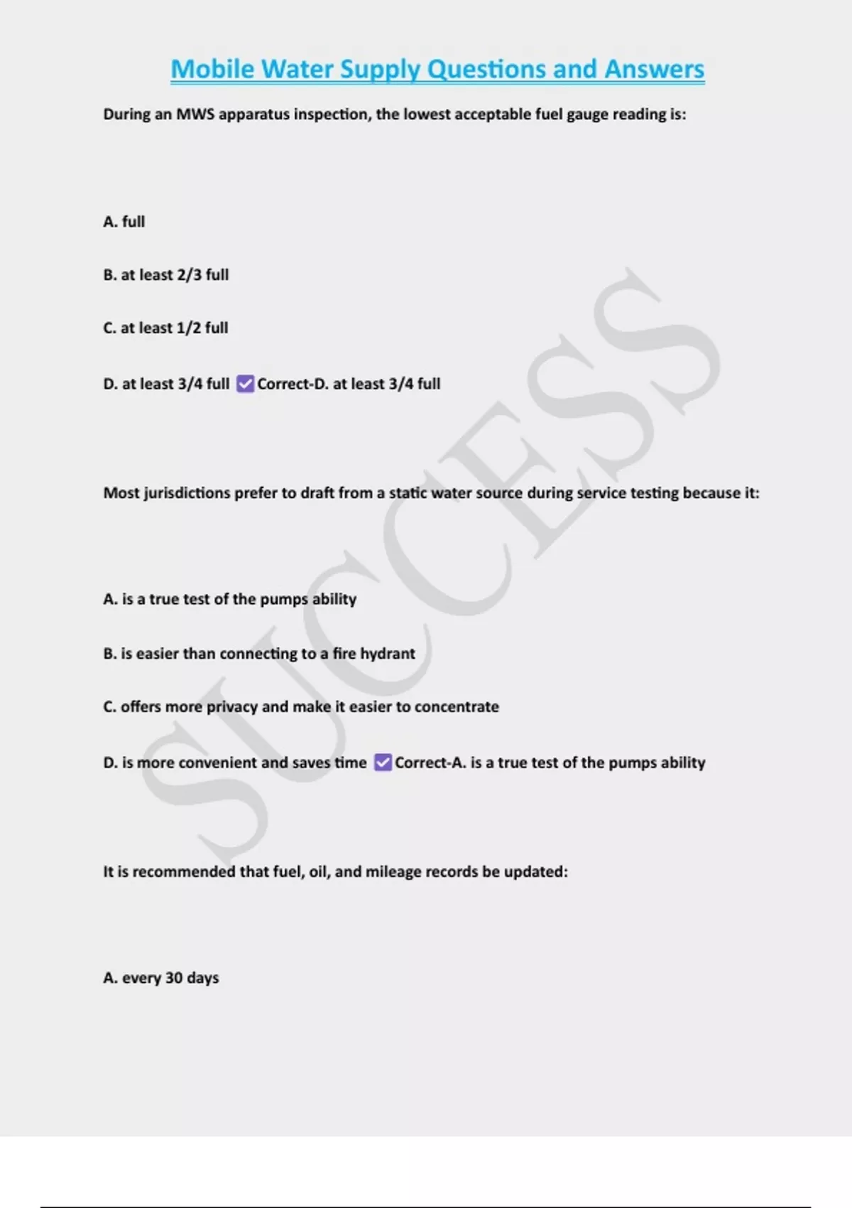 , Mobile Water Supply Questions and Answers