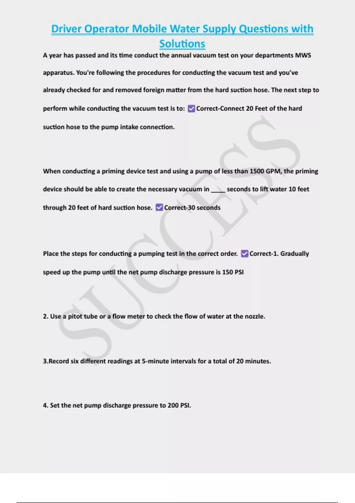 , Driver Operator Mobile Water Supply Questions with