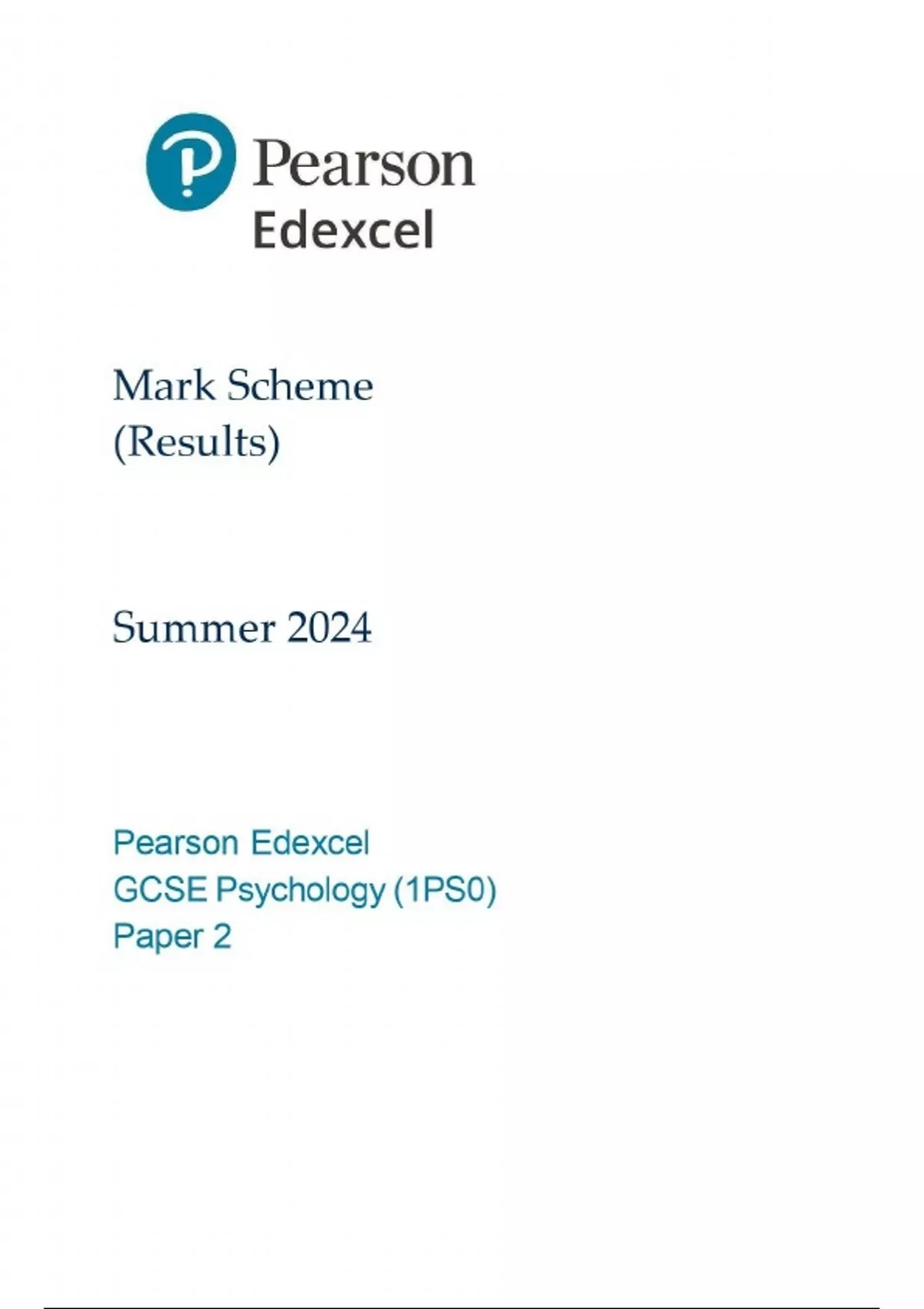 2025 EDEXCEL GCSE PSYCHOLOGY PAPER 2 MARK SCHEME