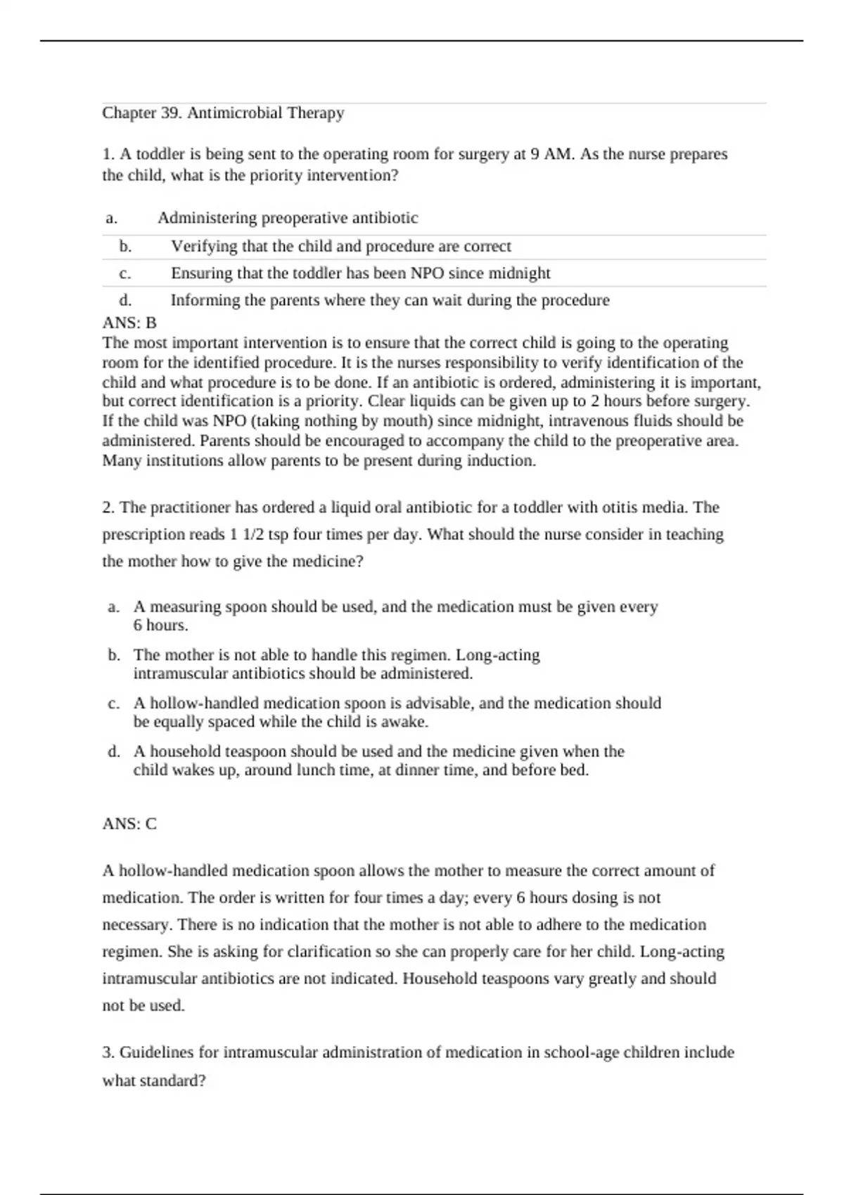 1. A toddler is being sent to the operating room for surgery at 9 AM. As the nurse prepares