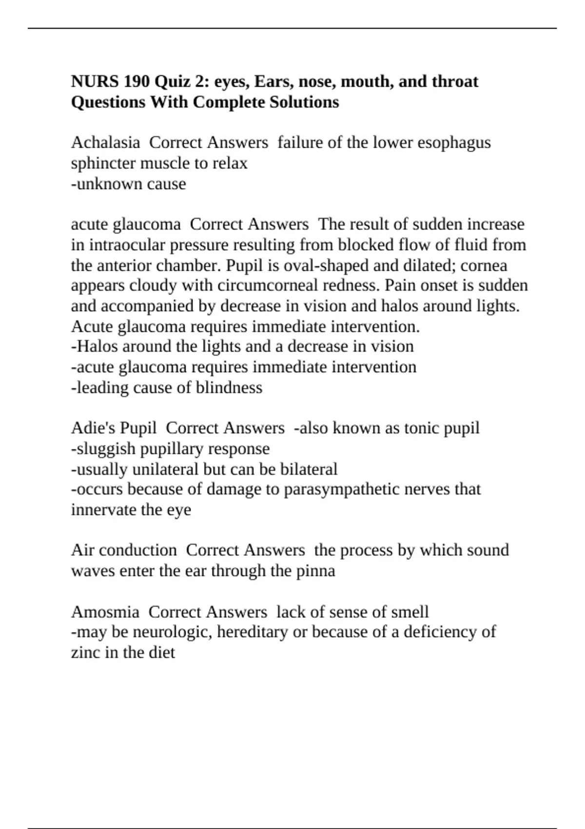 Adie's Pupil Correct Answers -also known as tonic pupil