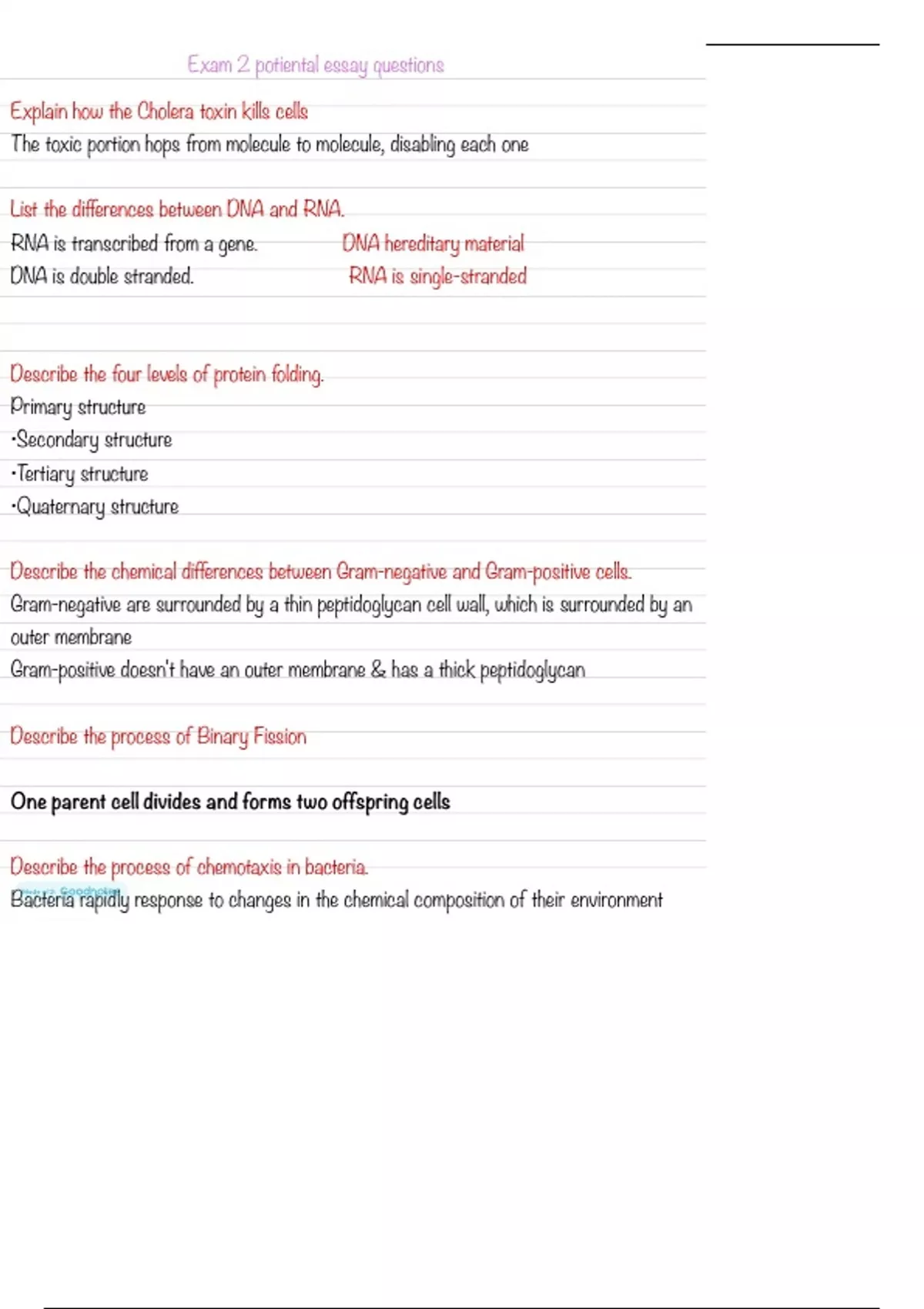 Microbiology : MCB2020C Notes and Exam Questions