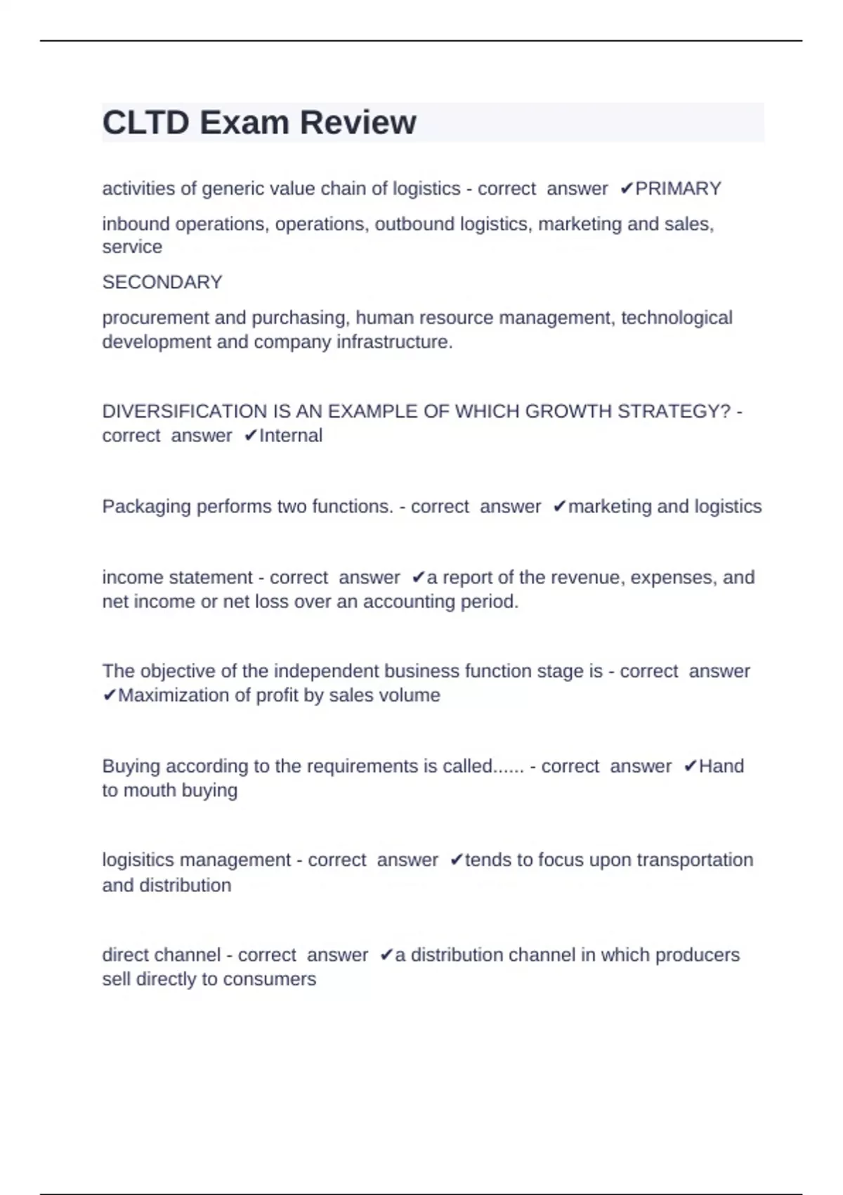 activities of generic value chain of logistics - correct answer ✔PRIMARY