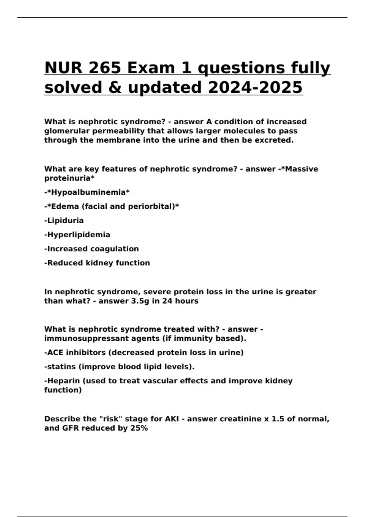 What are key features of nephrotic syndrome? - answer -*Massive