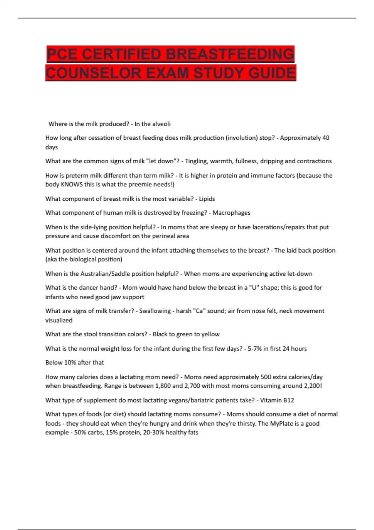 PCE CERTIFIED BREASTFEEDING