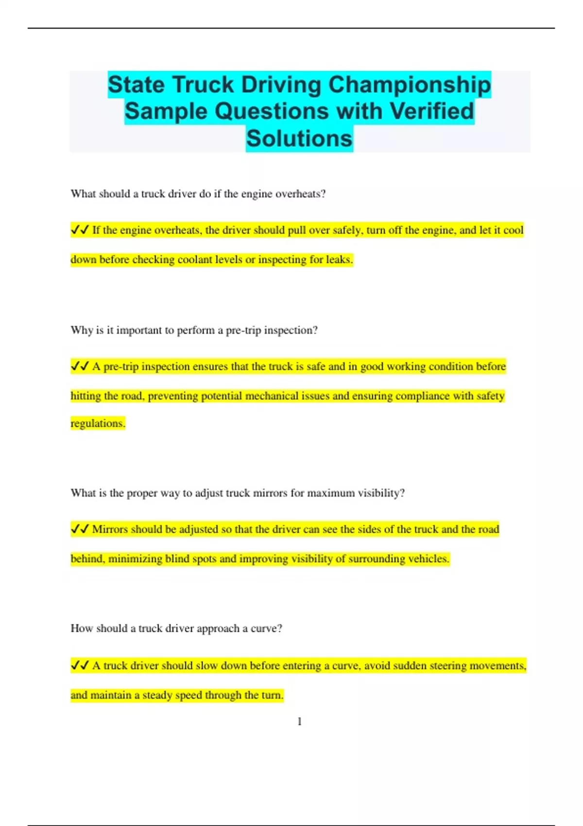 ✔✔ A pre-trip inspection ensures that the truck is safe and in good working condition before