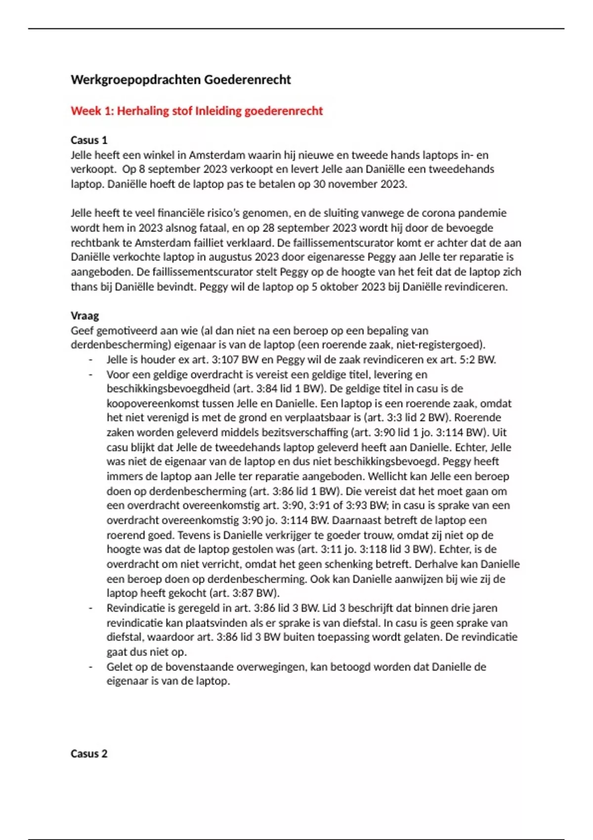 - Conclusie: Fatima was eigenaar en kon revindiceren bij Ben. Ben heeft de laptop