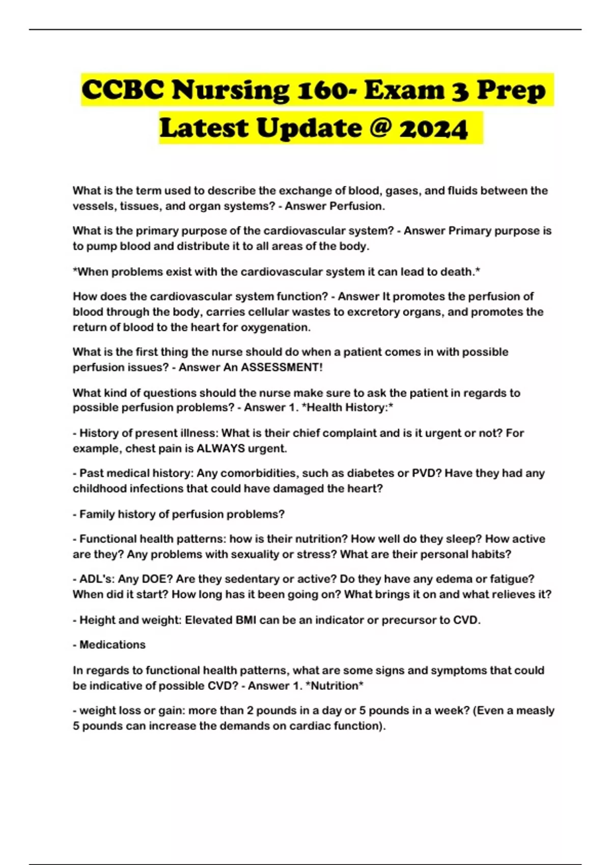 be indicative of possible CVD? - Answer 1. *Nutrition*