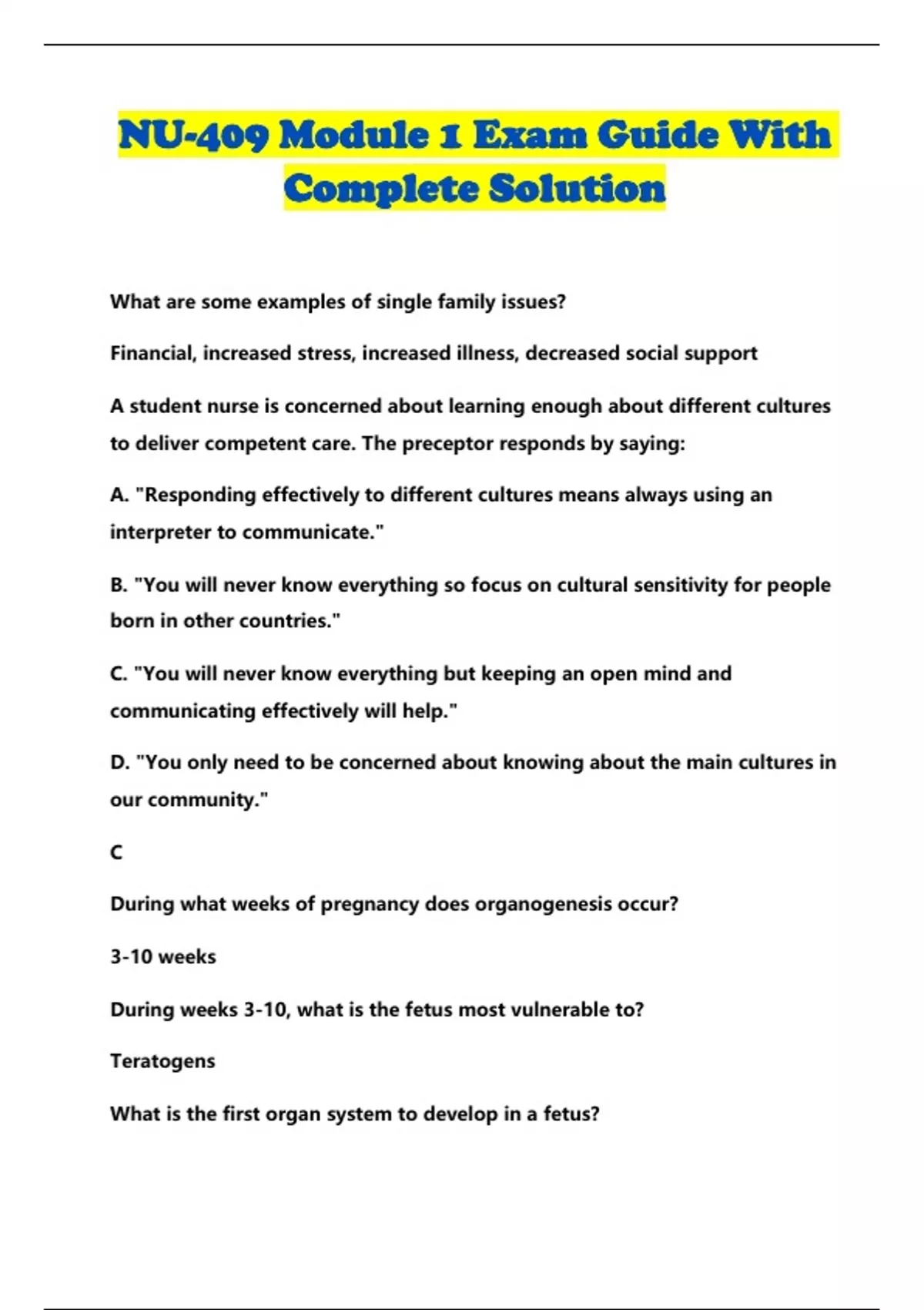 NU-409 Module 1 Exam Guide With Complete Solution...