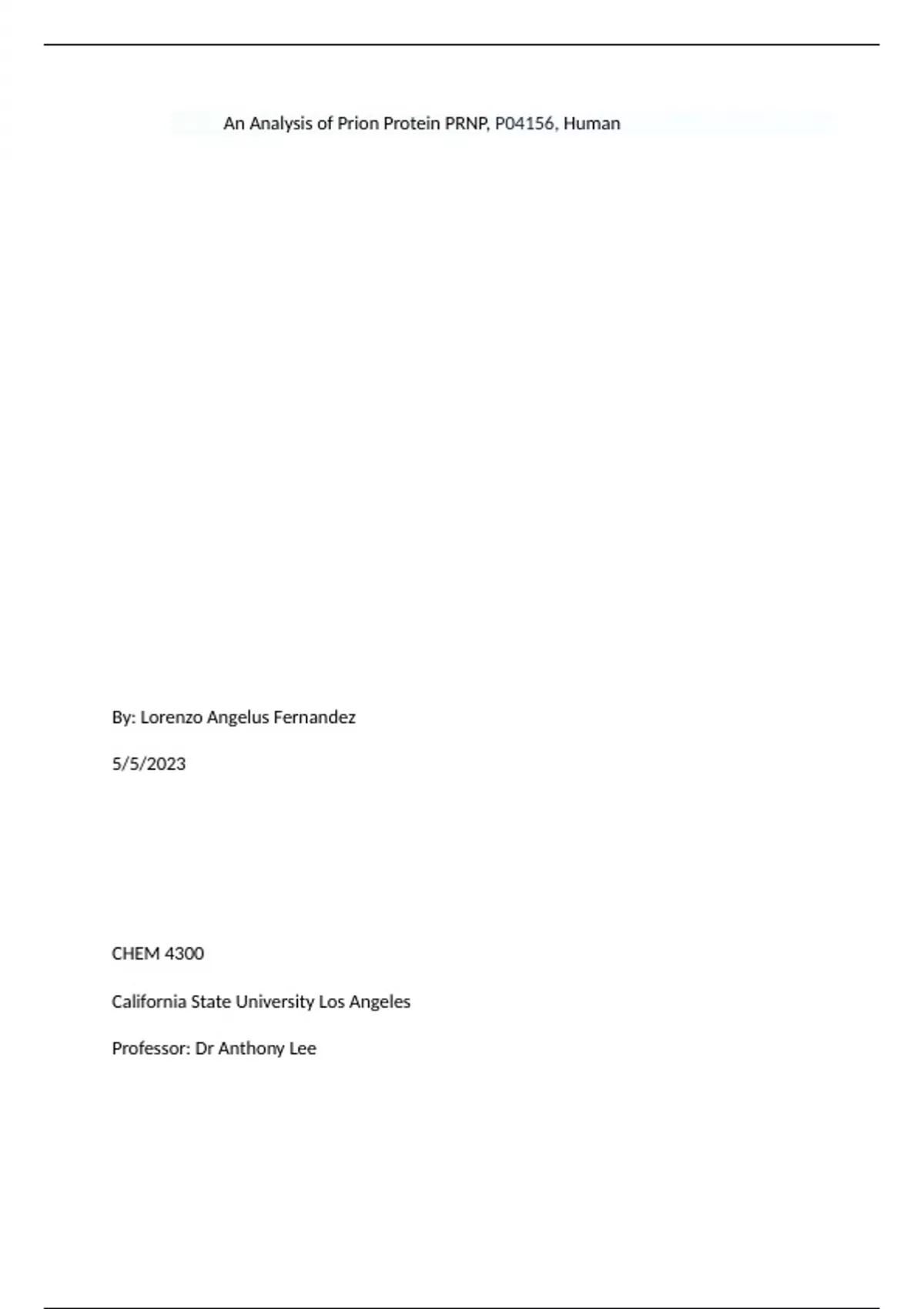 An Analysis of Prion Protein PRNP, P04156, Human