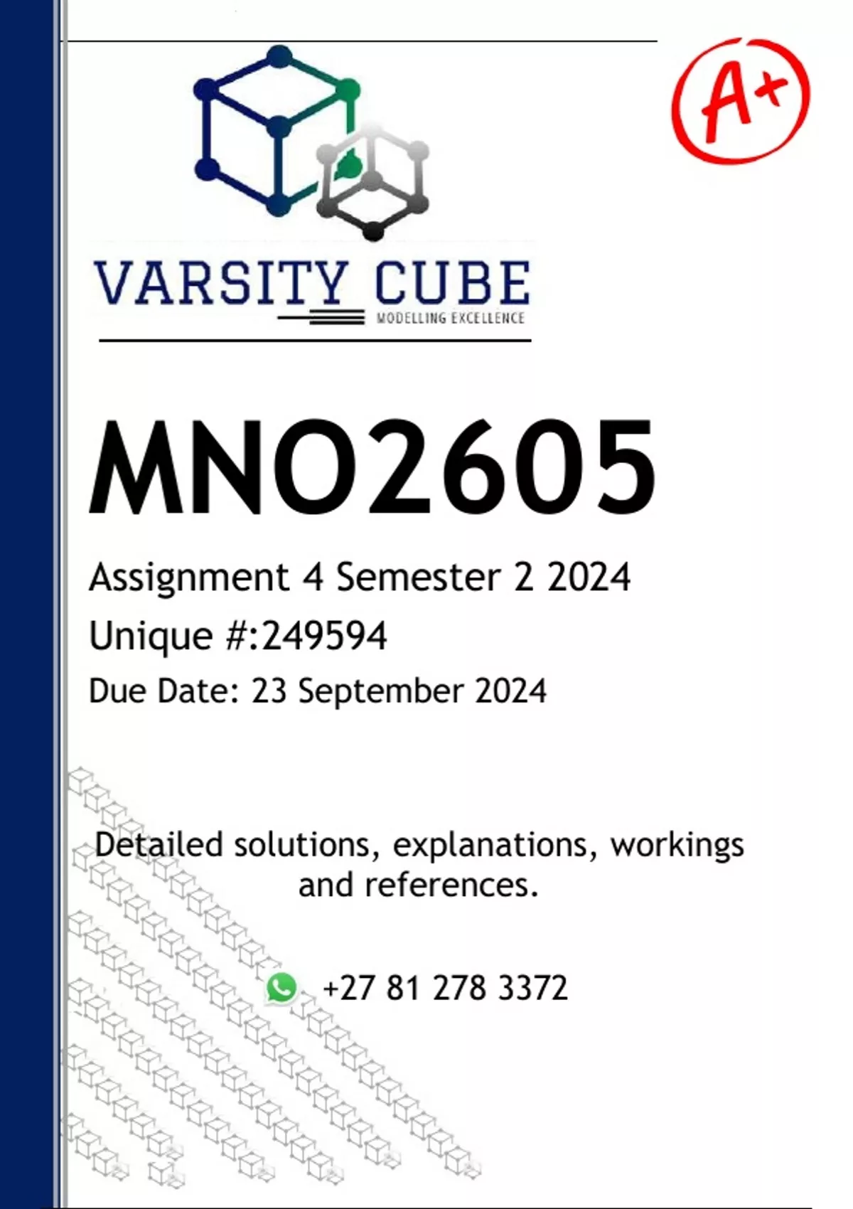 MNO2605 Assignment 4 (DETAILED ANSWERS) Semester 2 2024 - DISTINCTION GUARANTEED - DISTINCTION GUARANTEED - DISTINCTION GUARANTEED Answers, guidelines, workings and references ...QUESTION 1 [15] In South Africa, both the OHS Act and the MHS Act stipulate the legal safety responsibilities of employees in an organisation. Briefly explain five (5) general safety responsibilities of employees in relation to the Ballito construction case study. QUESTION 2 [15] Safety risk is unacceptable when the person cannot handle the safety risk. Describe five (5) particular requirements that employees in the workplace must meet in order to handle safety risks successfully in the workplace. QUESTION 3 [20] Safety hazards comprise six different structural characteristics that contribute to their hazardousness, which may eventually result in harm to humans, or damage to property and the environment. Make use of the case study to briefly discuss four (4) structural characteristics of safety hazards. QUESTION 4 [20] Administrative control measures refer to controls that are administratively enforced. Make use of the case study to describe four (4) measures that should be included under the administrative safety control.