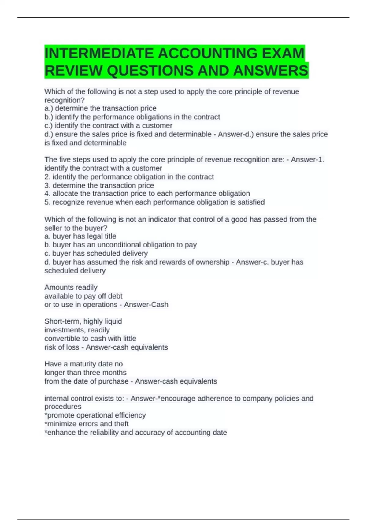The five steps used to apply the core principle of revenue recognition are: - Answer-1.
