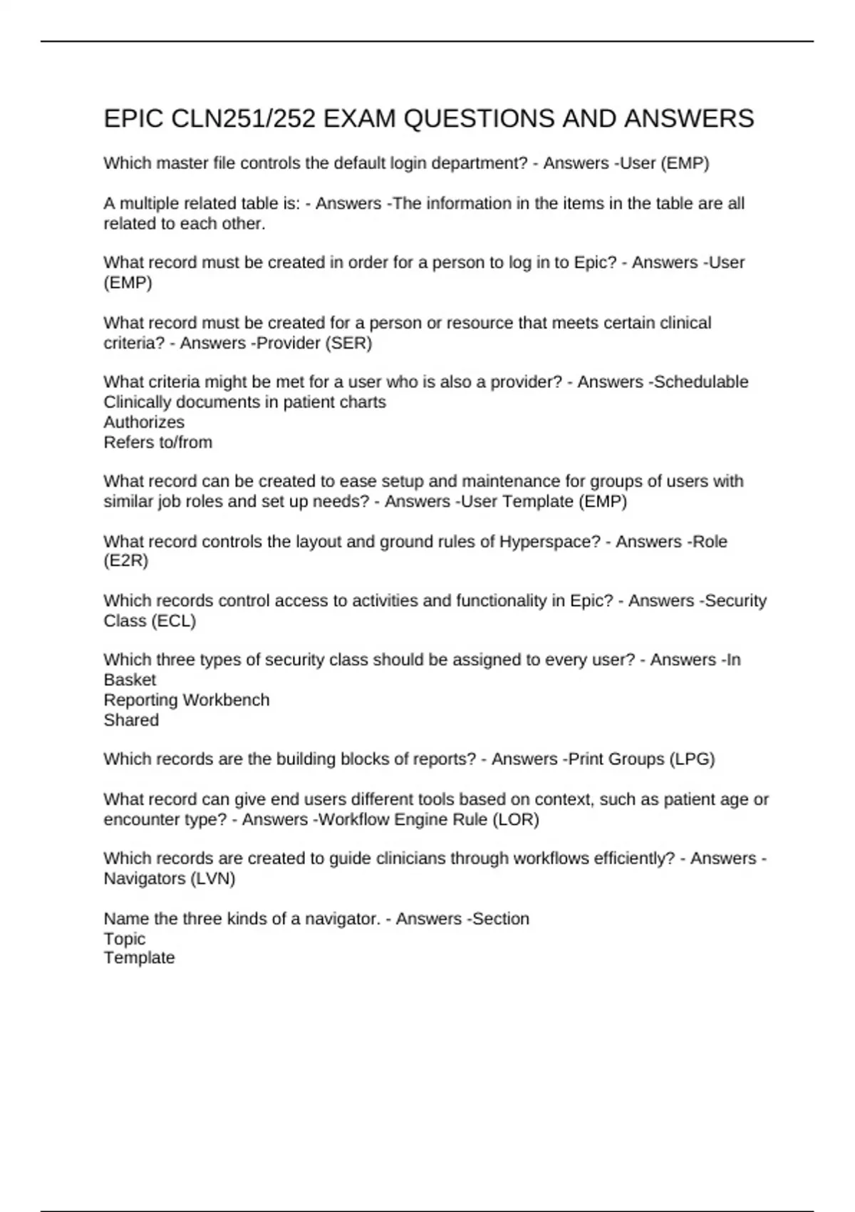 EPIC CLN251/252 EXAM QUESTIONS AND ANSWERS