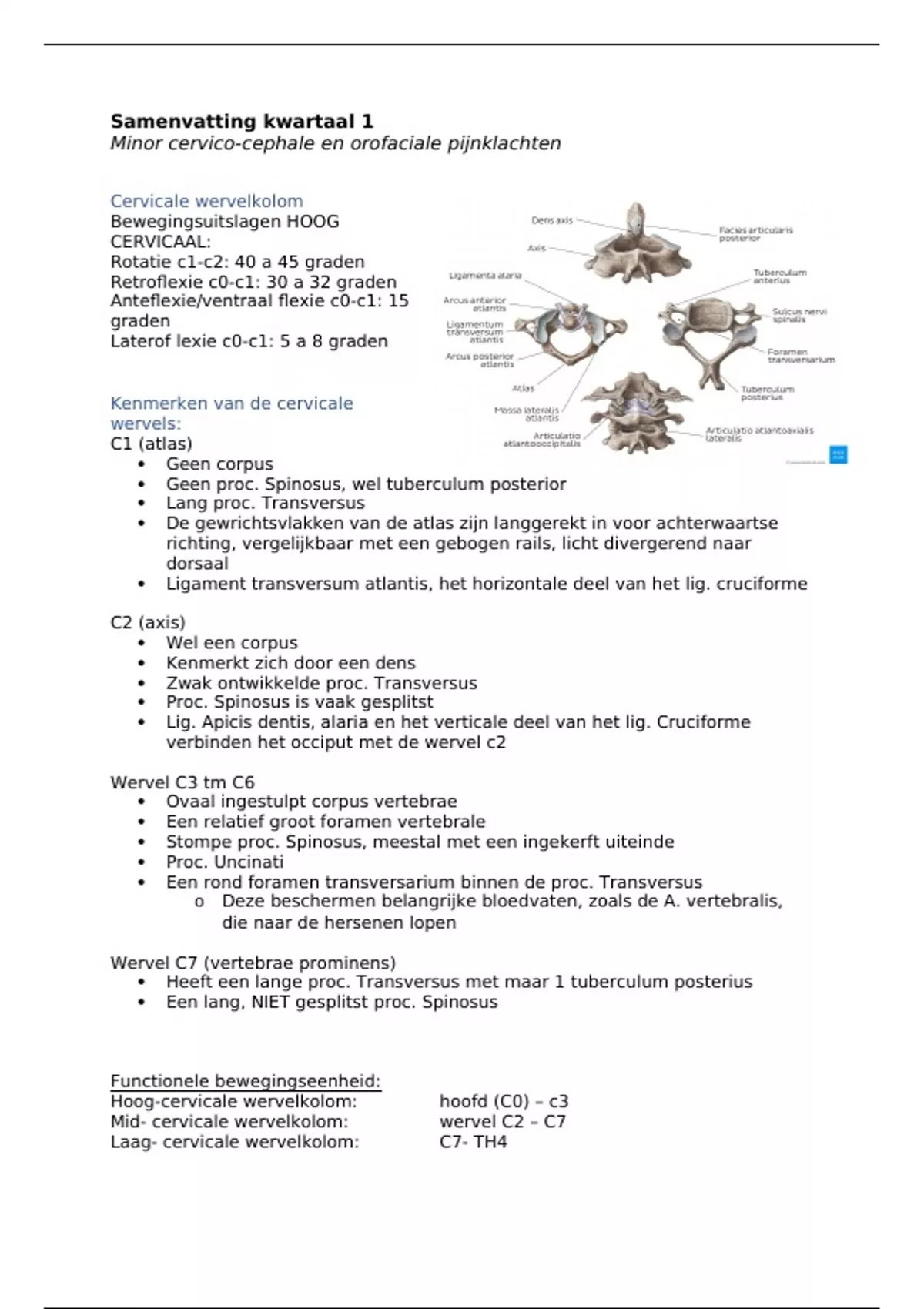 Hoog-cervicale wervelkolom: hoofd (C0) – c3
