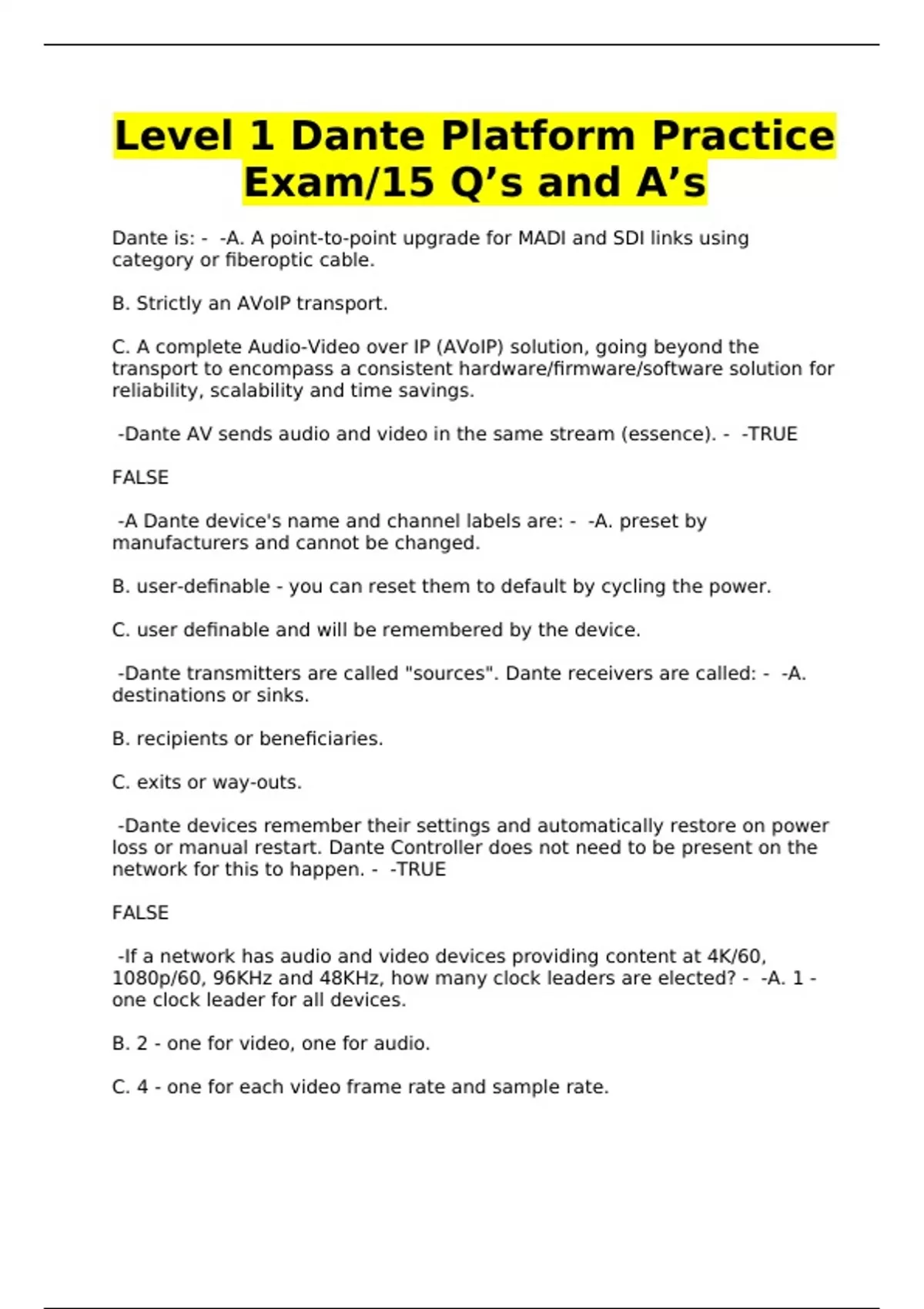 Dante is: - -A. A point-to-point upgrade for MADI and SDI links using