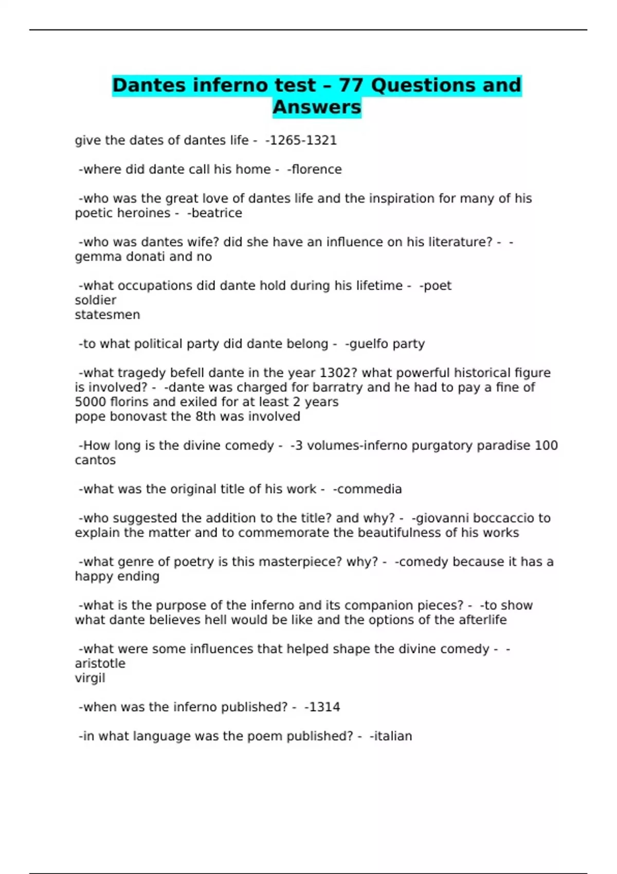 -How long is the divine comedy - -3 volumes-inferno purgatory paradise 100